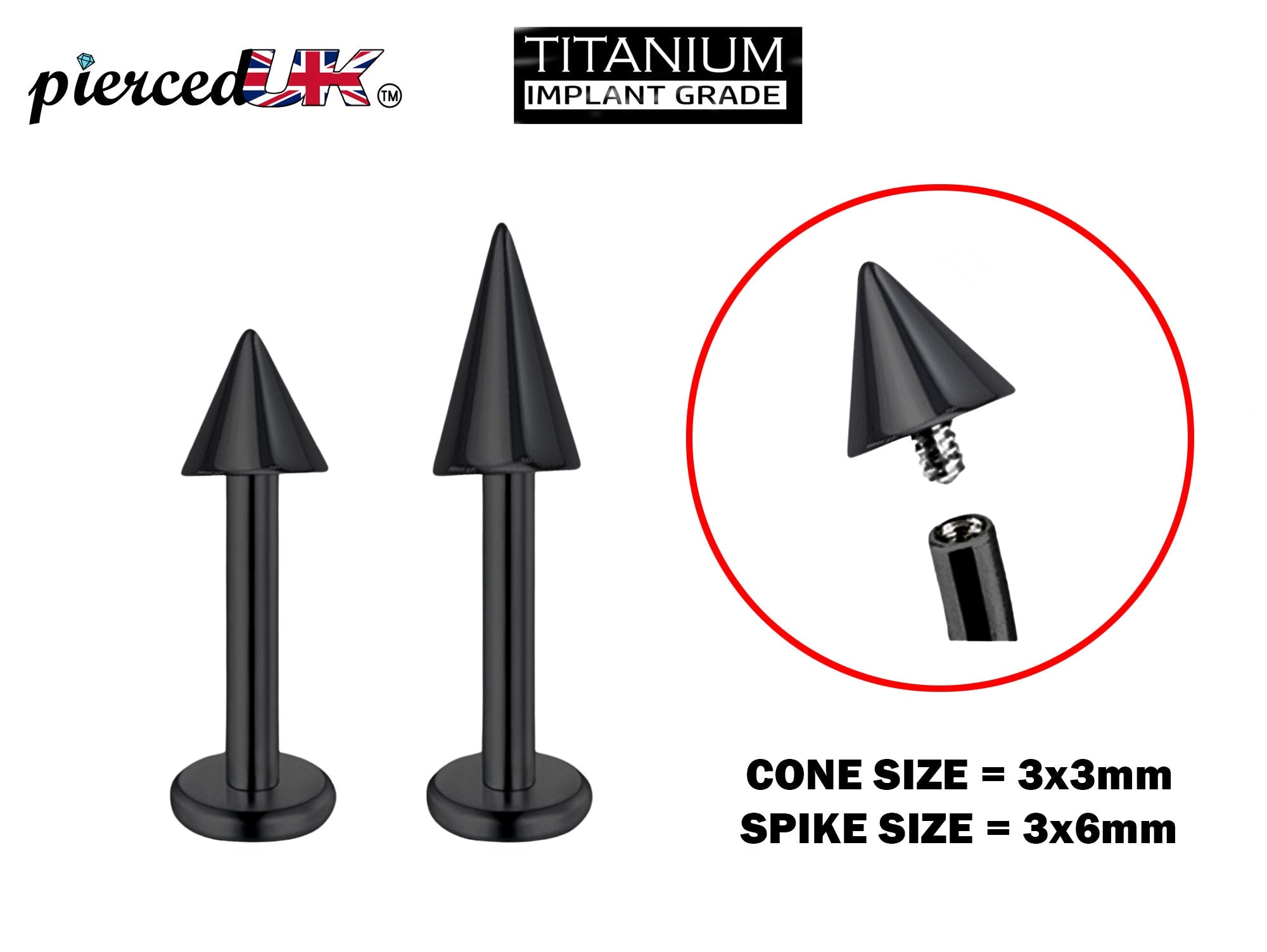 Titanium Black Spike / Cone Labret Lip Piercing - Internally Threaded