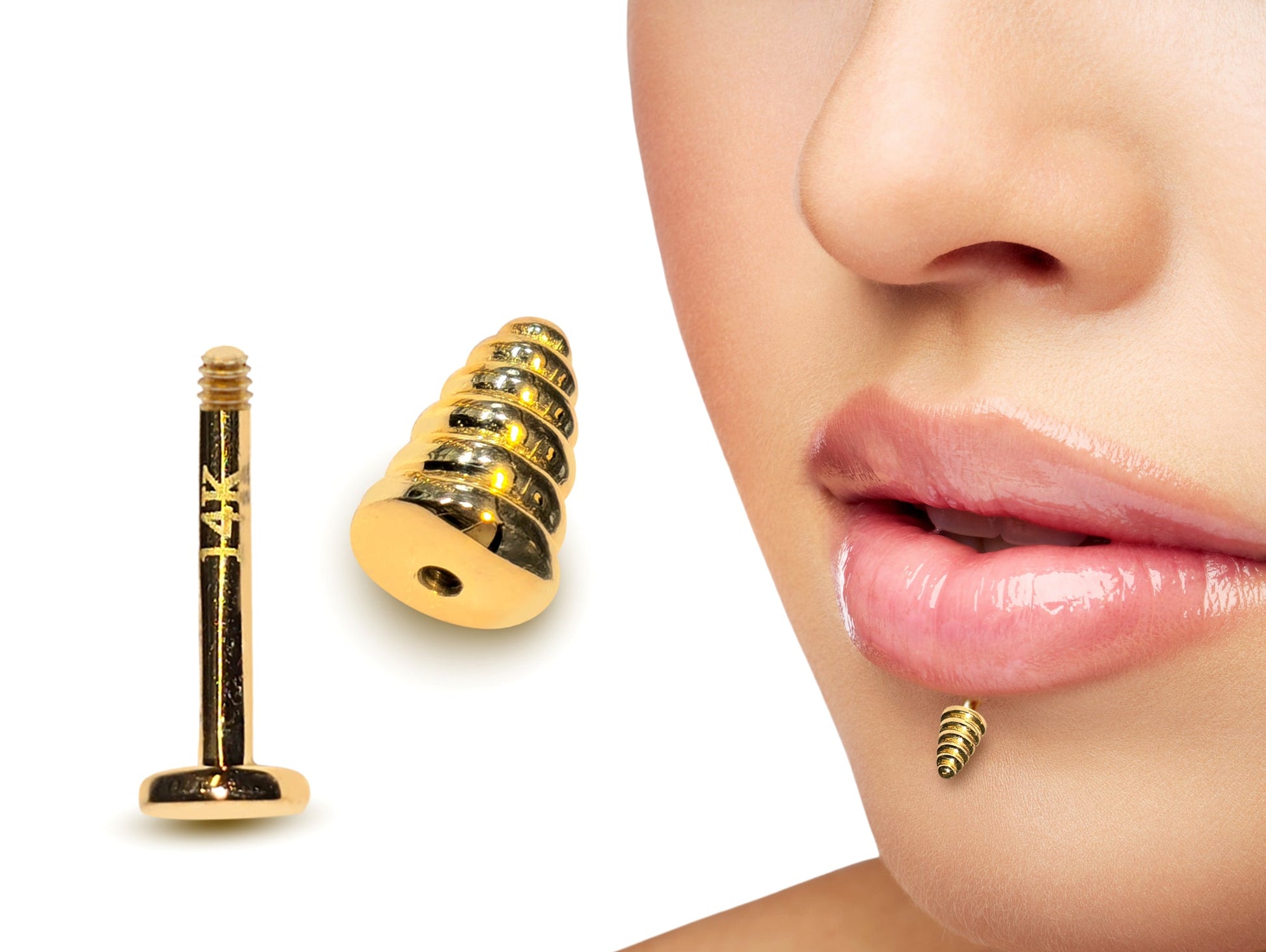 14K Gold Labret Stud Lip Jewellery, Lip Piercing Tragus Earring - Dumbbell Design - 16G Body Jewellery Gold Lip Bar