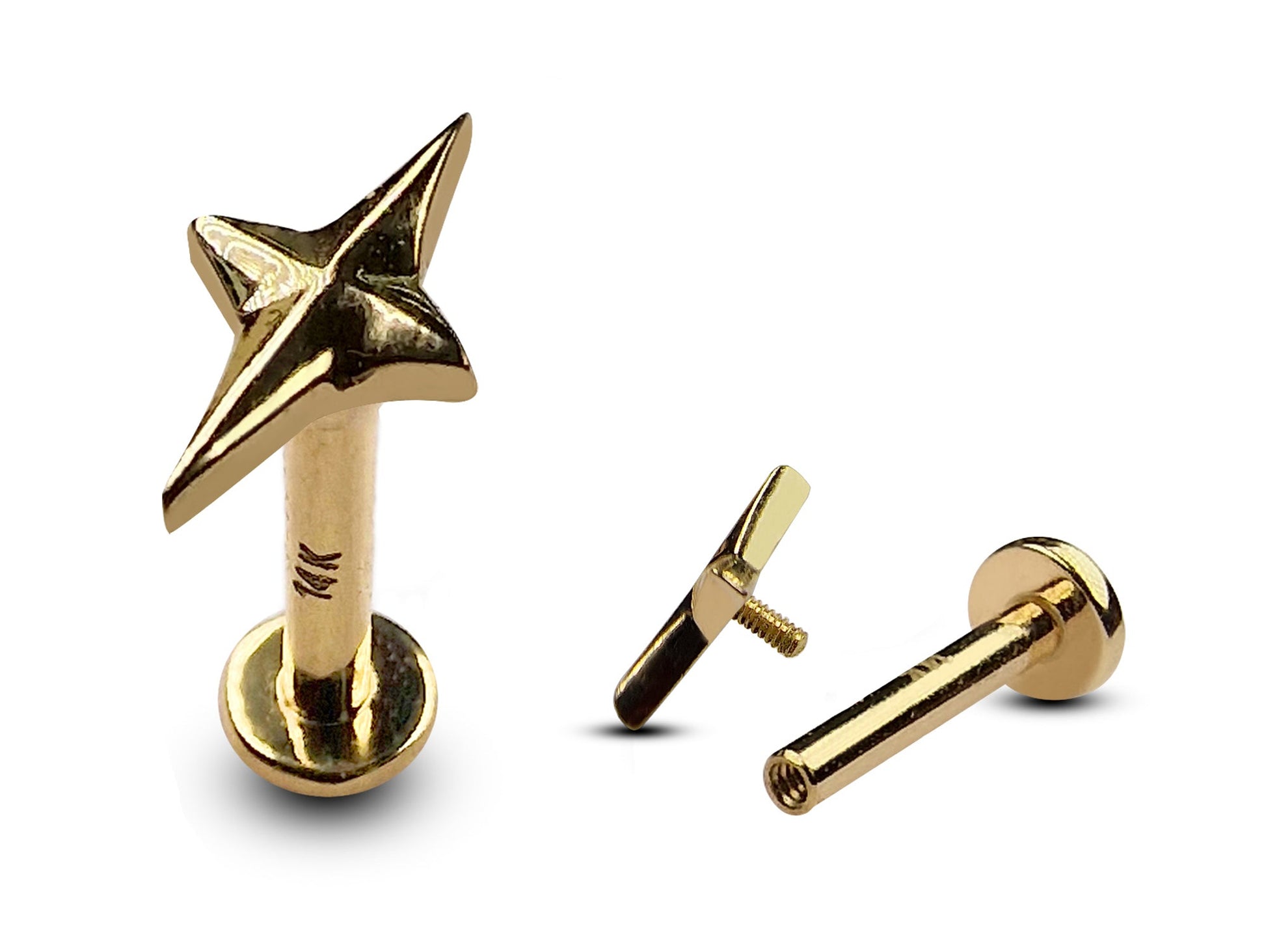14K Gold Spark Tragus Stud Piercing, Labret Stud, Ear Cartilage Jewelry - Internally Threading Body Jewellery Ear Piercing