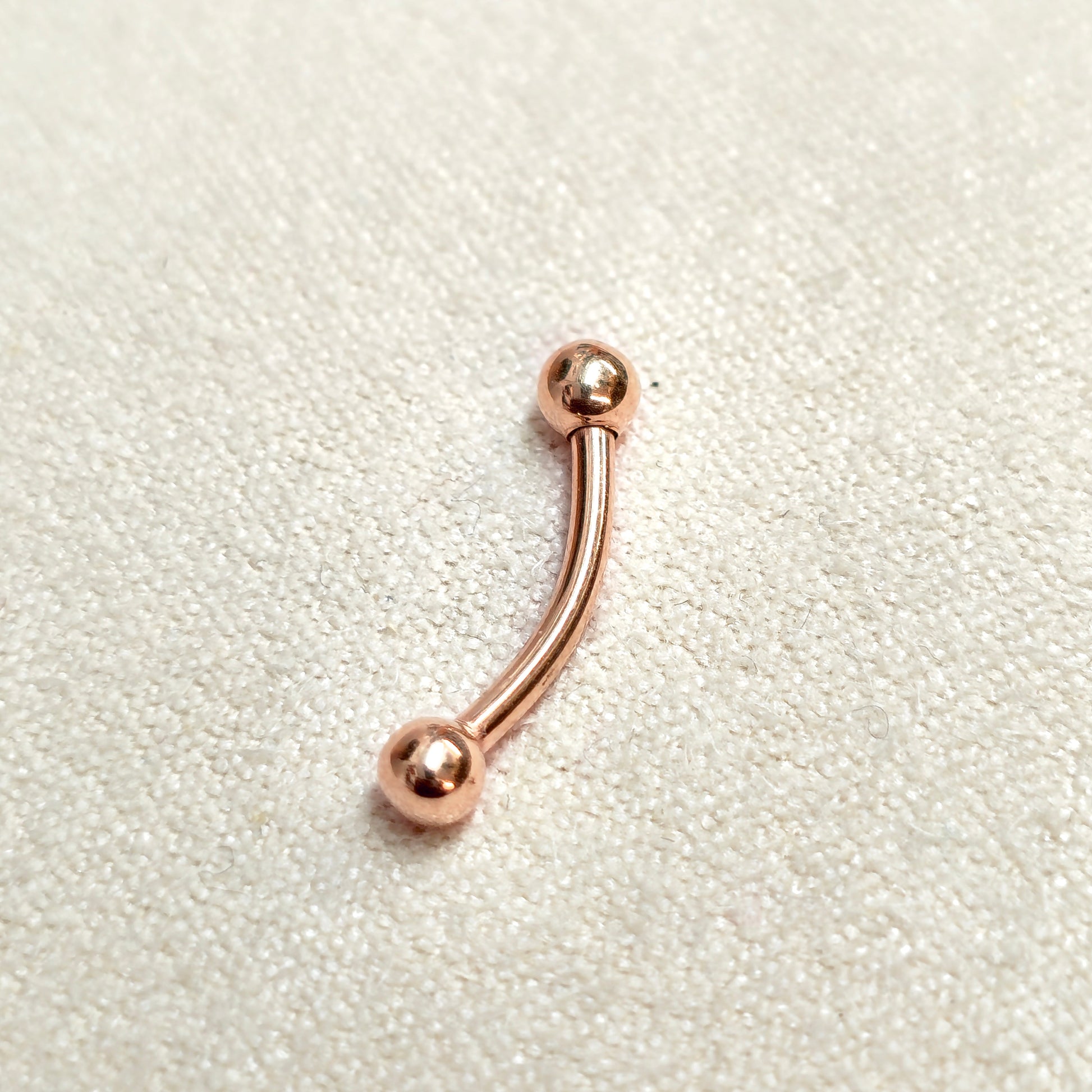 14K Rose Gold 16G Curved Barbell Piercing - 14K Gold Body Piercing for Eyebrow, Lip Studs, Rook Jewelry, Cartilage Bar