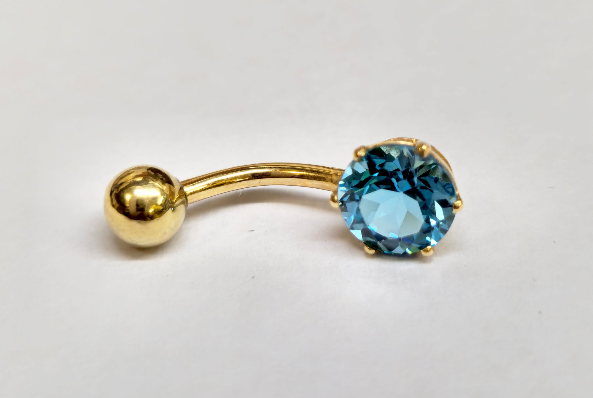14K Solid Gold Belly Button Ring with Solitaire Prong Set Crystal Belly Ring - Solid Gold Belly Bar Fine Jewelry Hand Set and Polished