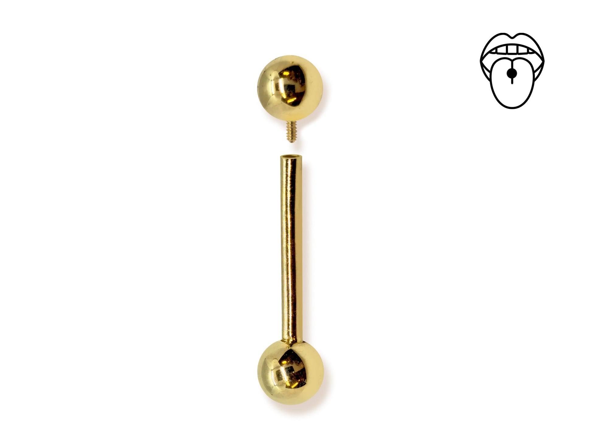 14K Gold Internally Threaded Tongue Barbell Piercing Body Jewellery | 14G (1.6mm)