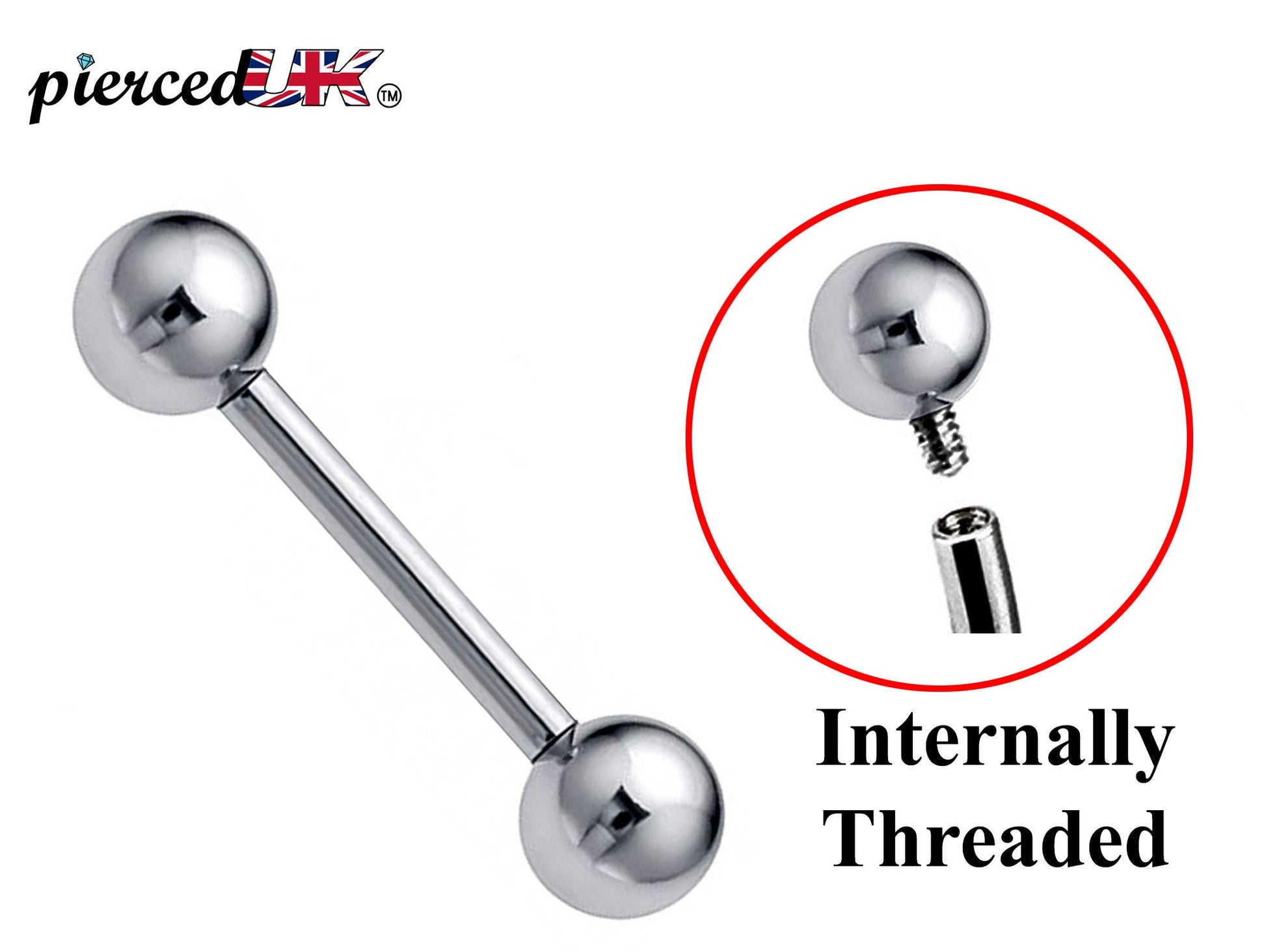 Barbell Piercing, Internally Threaded Barbell – 18g, 16g, 14g – Piercing for Tongue, Nipple Piercing, Ear, Tragus, Helix and More