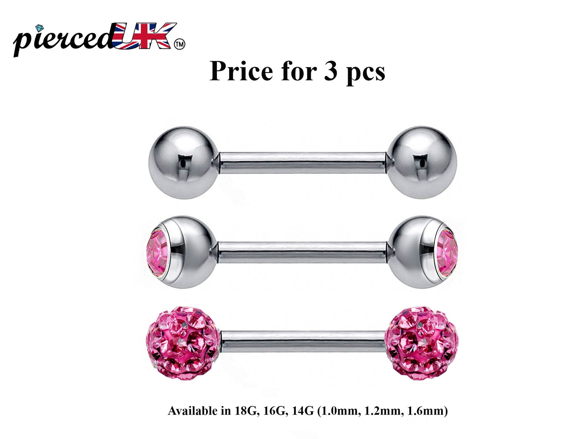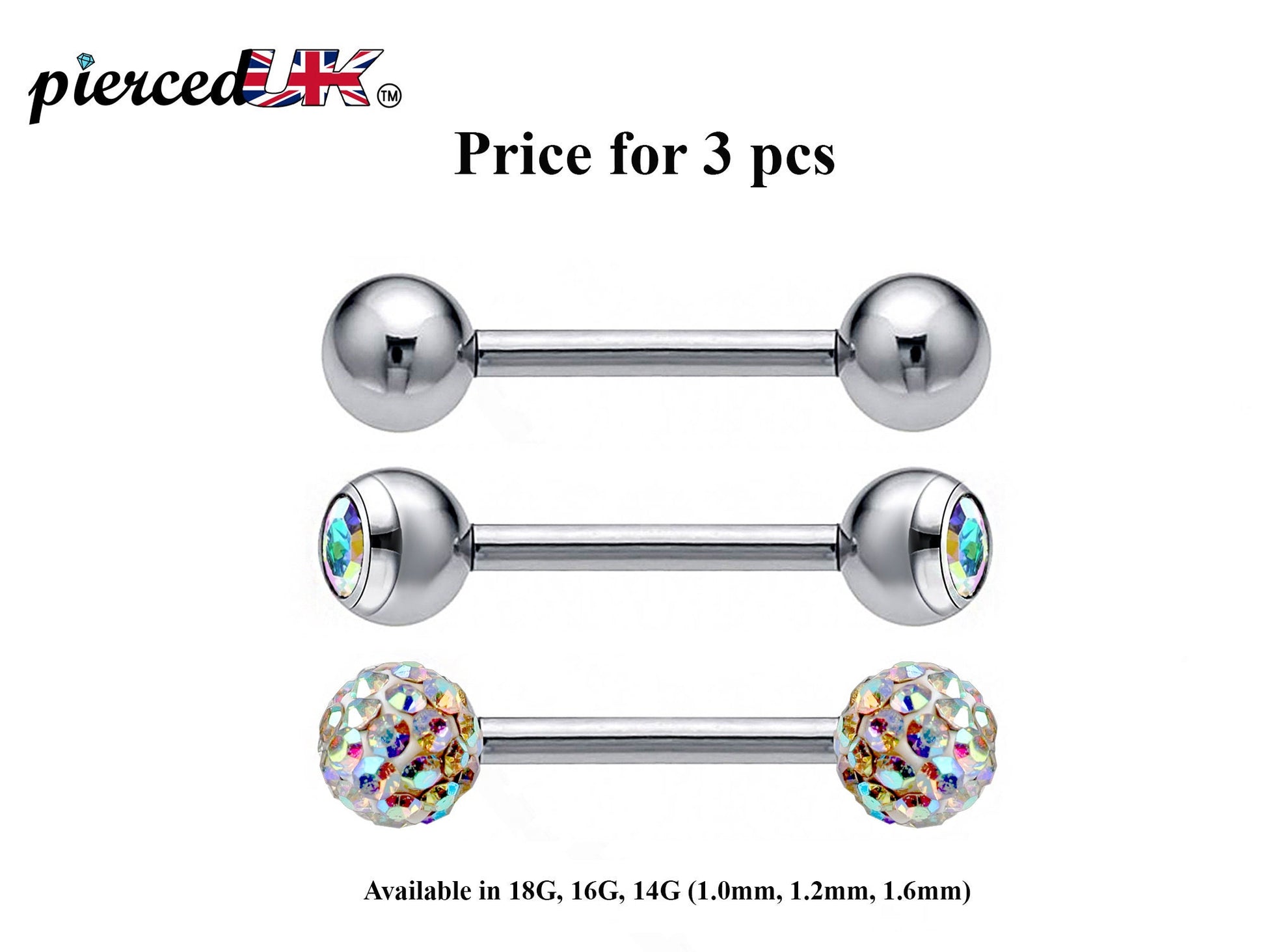 Barbell Stud, Industrial Piercing – 3pcs Barbell Piercing Jewelry – Ball / Gem ball / Disco ball – Piercing for Tongue Bar, Helix, Daith Ear