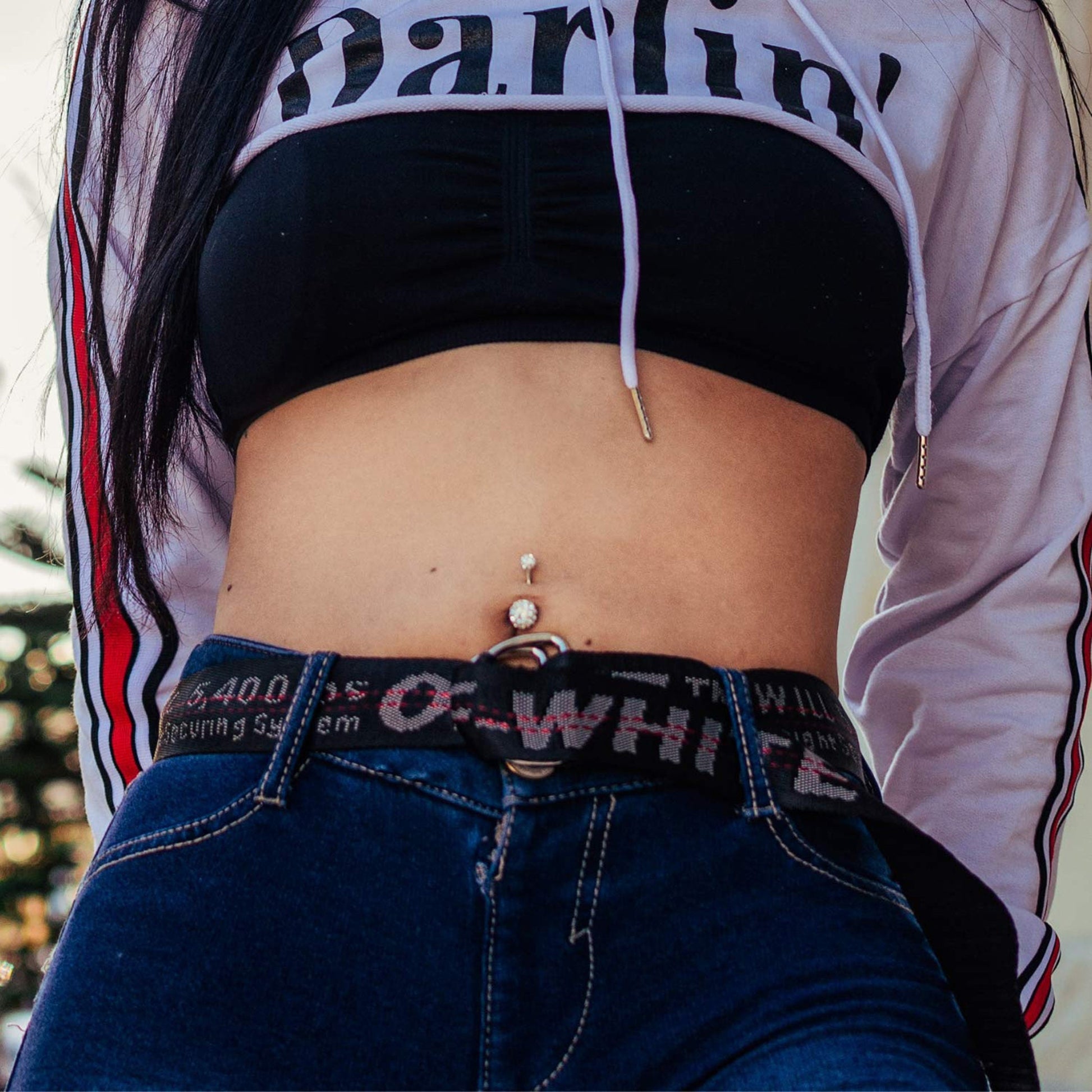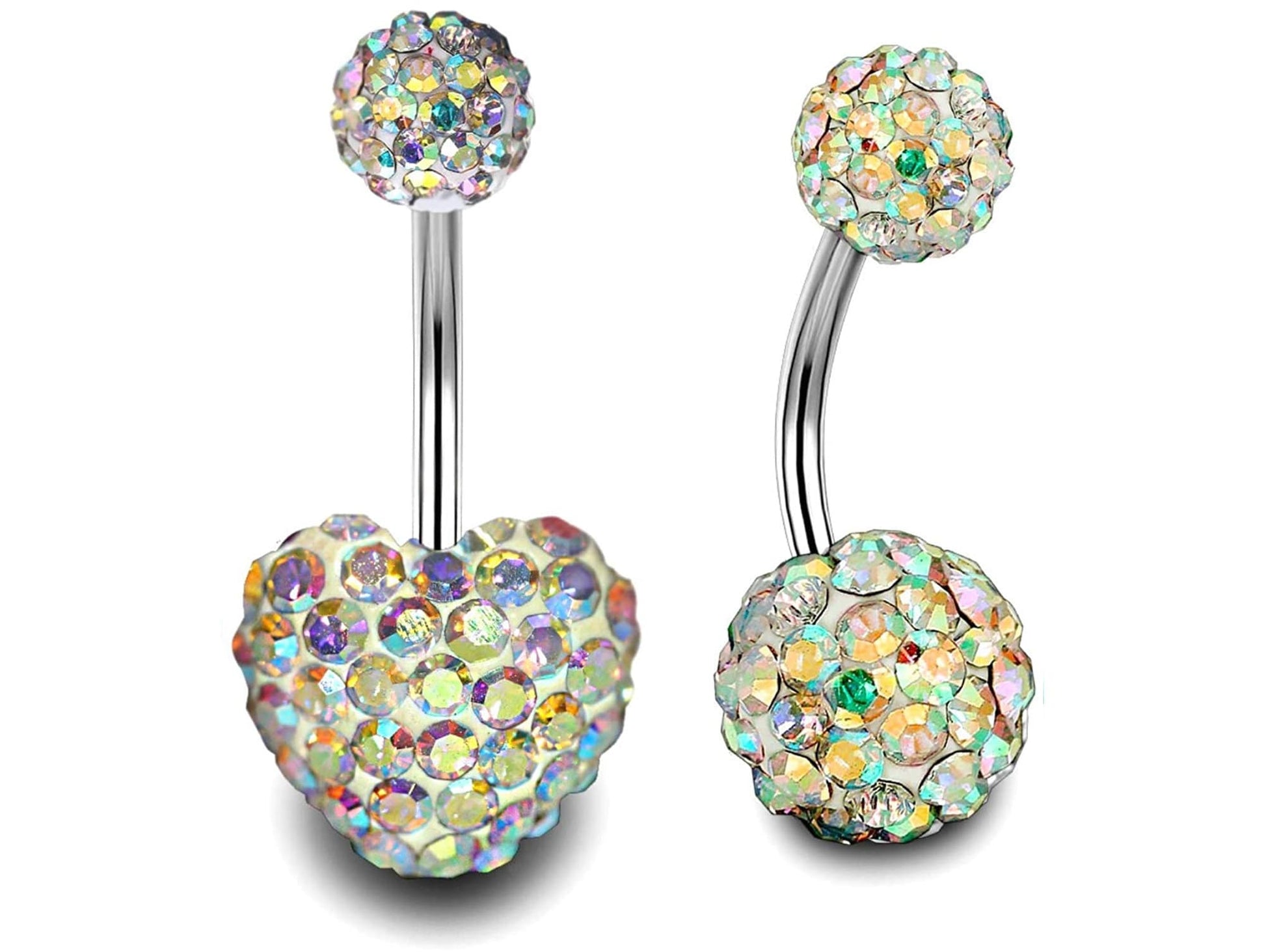 Belly Ring, Belly Button Rings - Glitter Ball and Heart Belly Bar Crystal for Navel Jewelry - 2pcs - 14g (1.6mm) Length is 6mm to 12mm