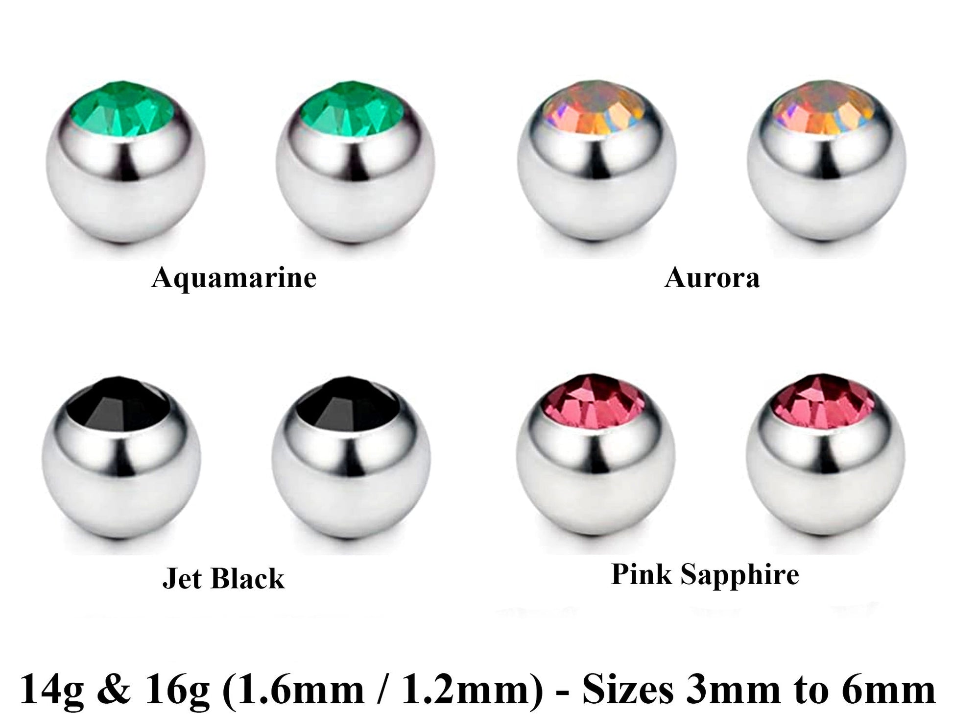 Body Jewelry Replacement Balls, Gem Ball - (2pcs) Piercing kit Loose parts for Barbells, Horseshoe Piercing, Labrets, Septum and more.