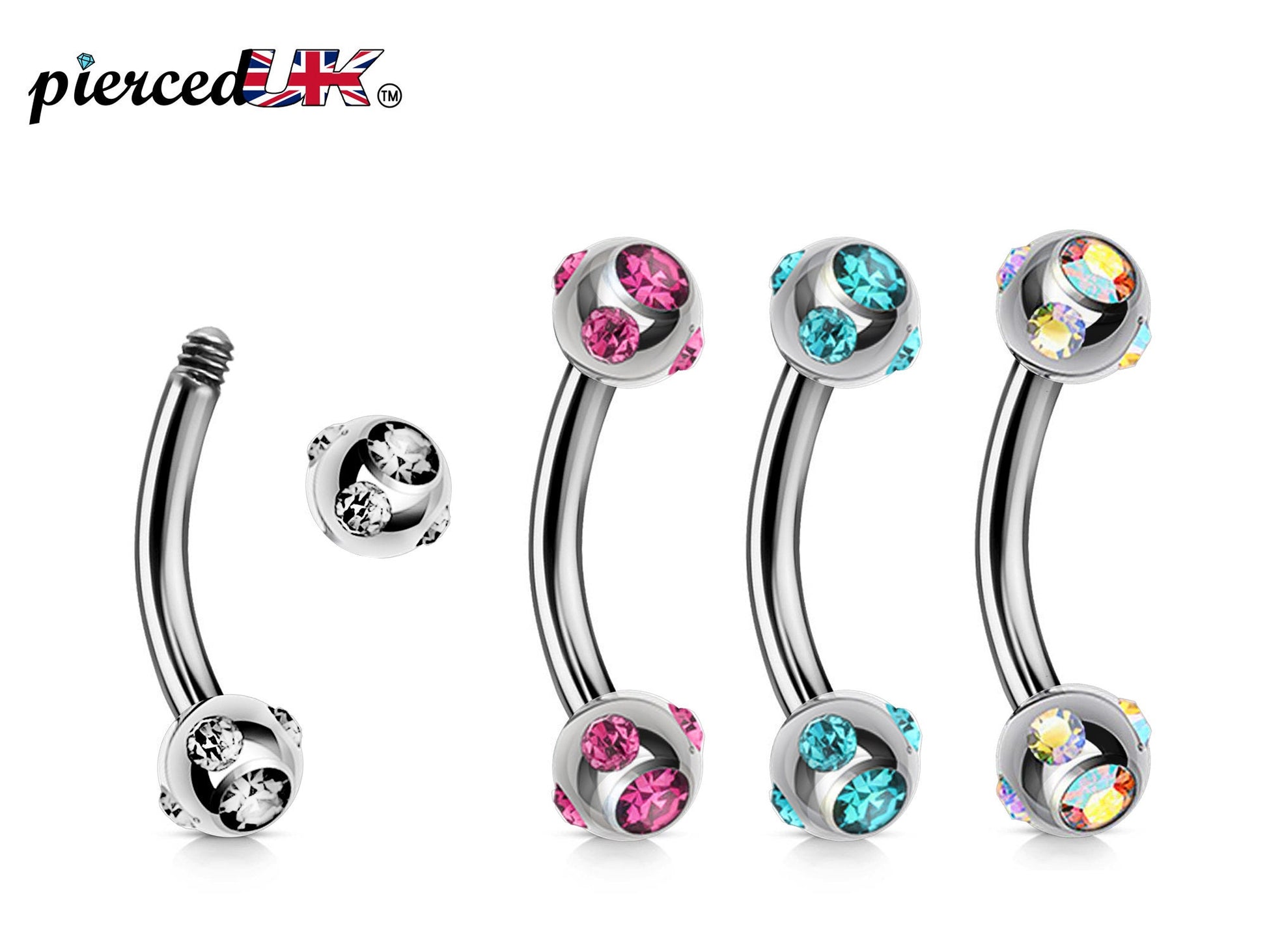 Curved Barbell - Multi Stone Set Barbell Piercing - 18g 16g 14g - Piercing for Cartilage, eyebrow piercing, Daith, Tragus, Helix and More.