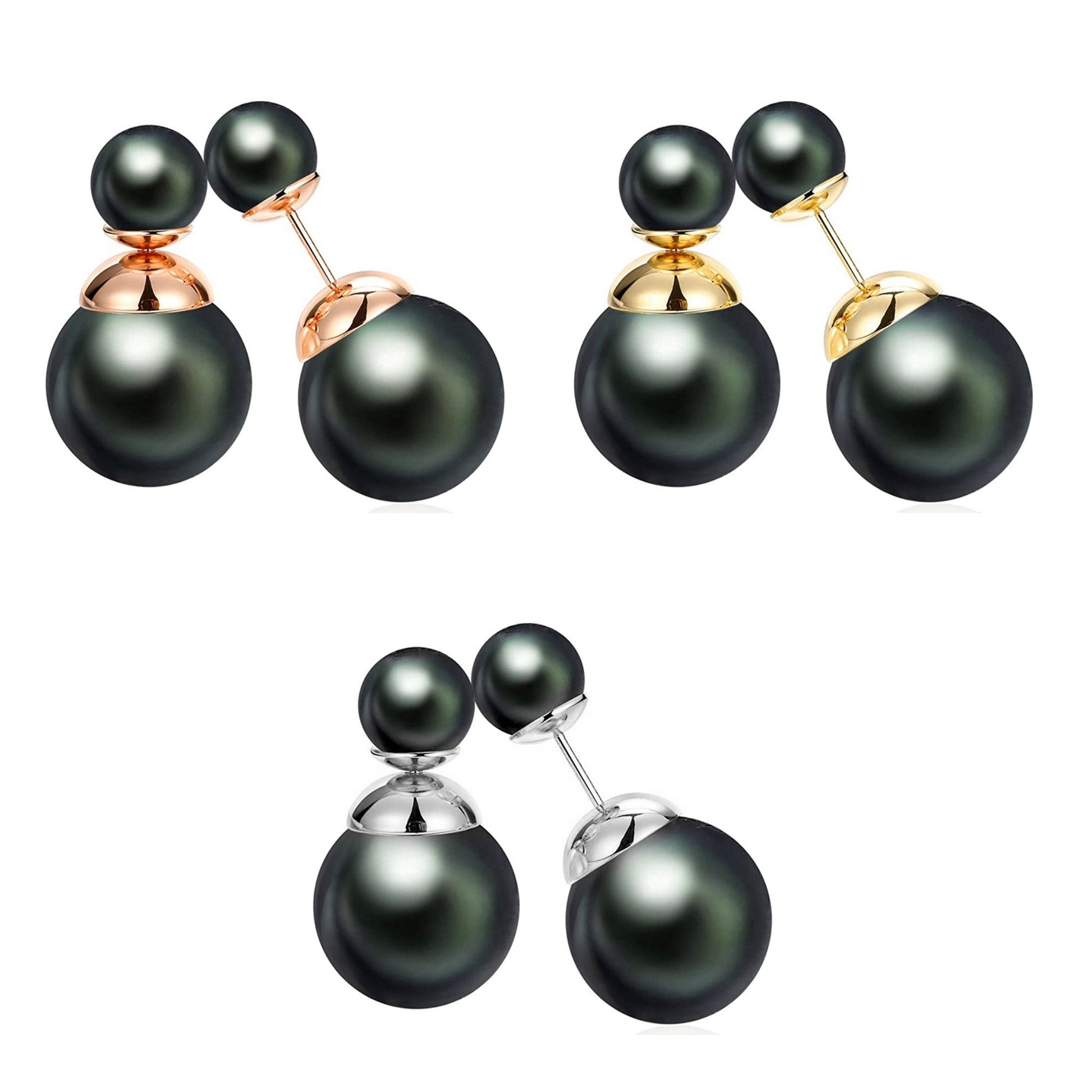 Double Sided Earrings, Double Pearl Dark Grey - Custom Front Back Earrings - Pearl Ear Jacket - 2 in 1 Earrings - Silver, Gold and Rosegold