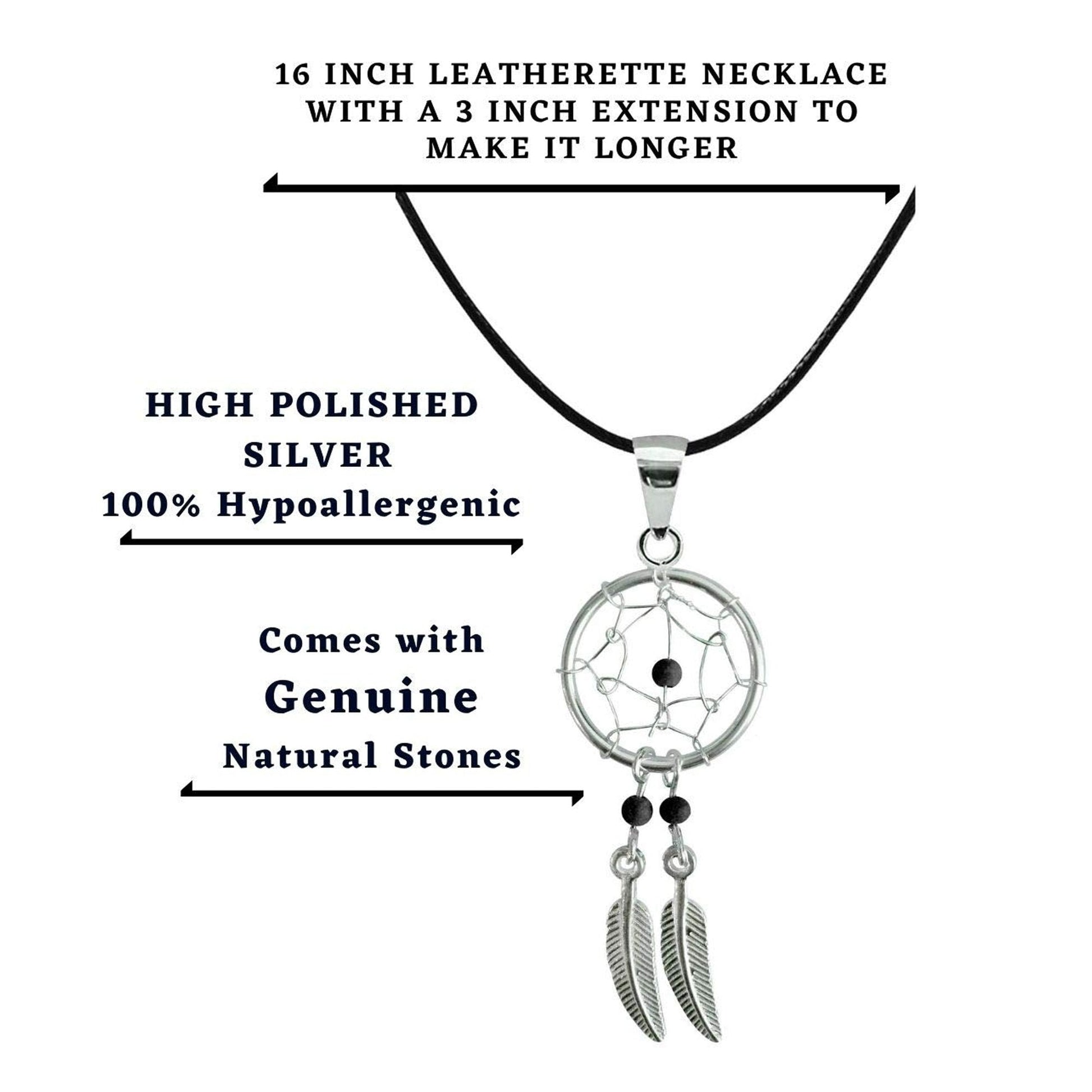Dreamcatcher Pendant, Silver Pendant with Genuine Stone Beads - Dreamcatcher Jewellery Necklace for Women