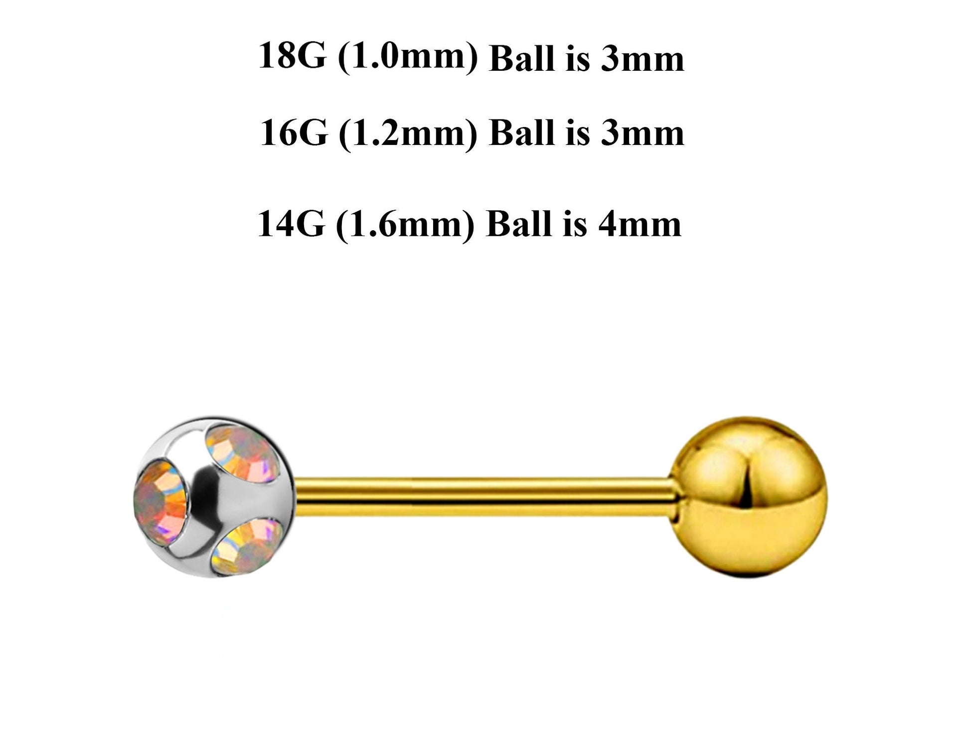 Gold Barbell Stud, Industrial Piercing – Custom Barbell Piercing 18g, 16g, 14g Body Jewellery for Nipple, Eyebrow, Tongue Bar and More