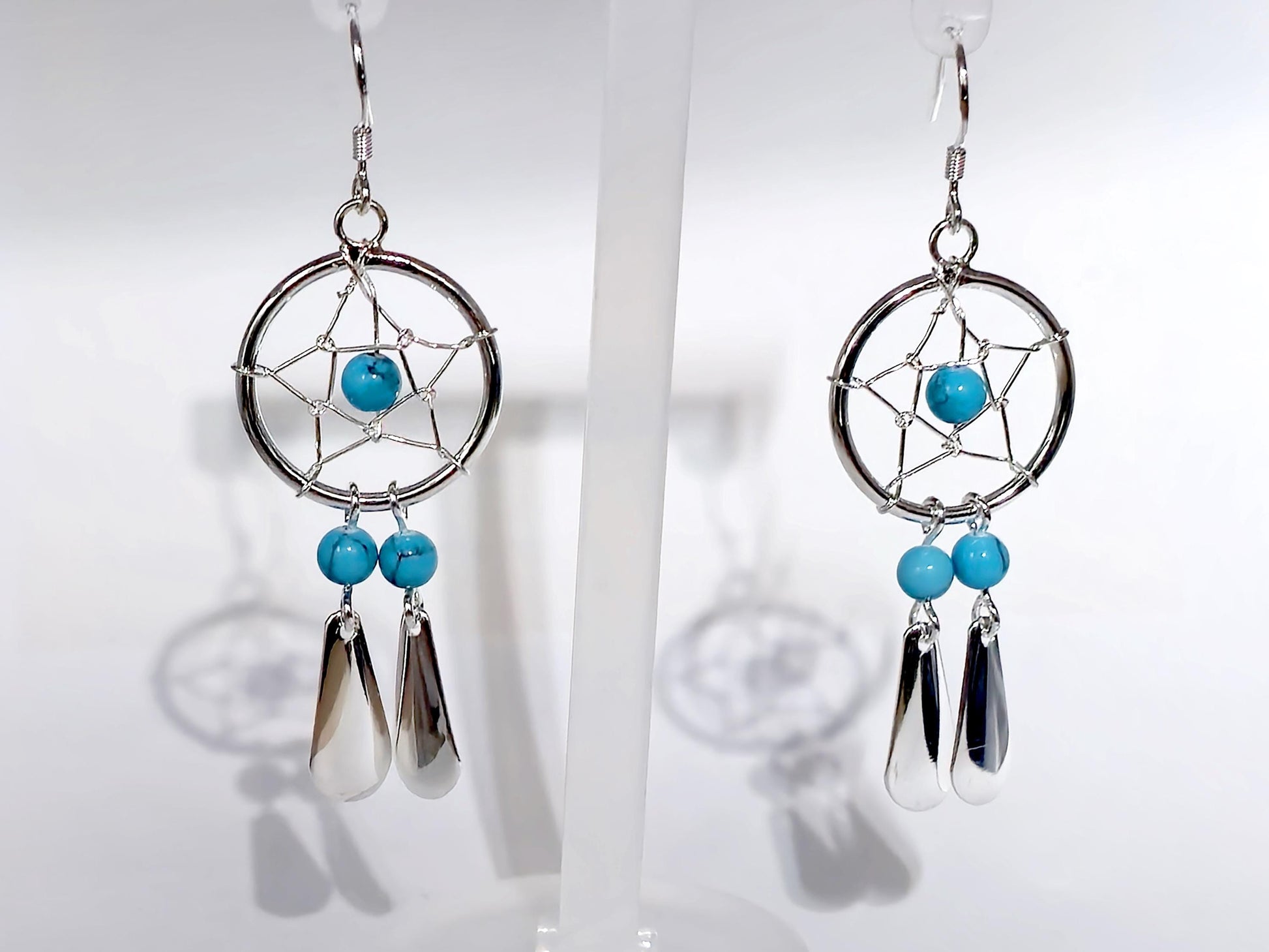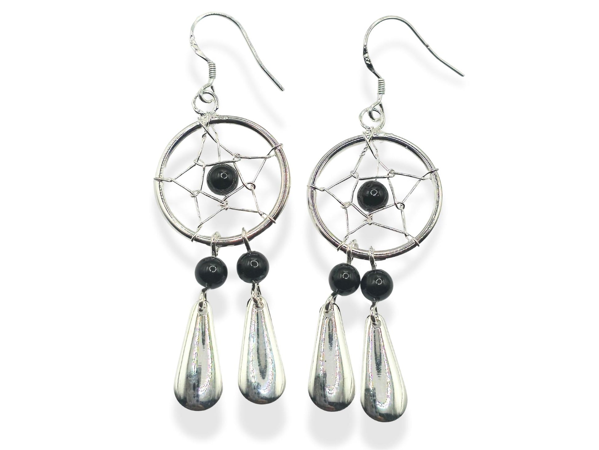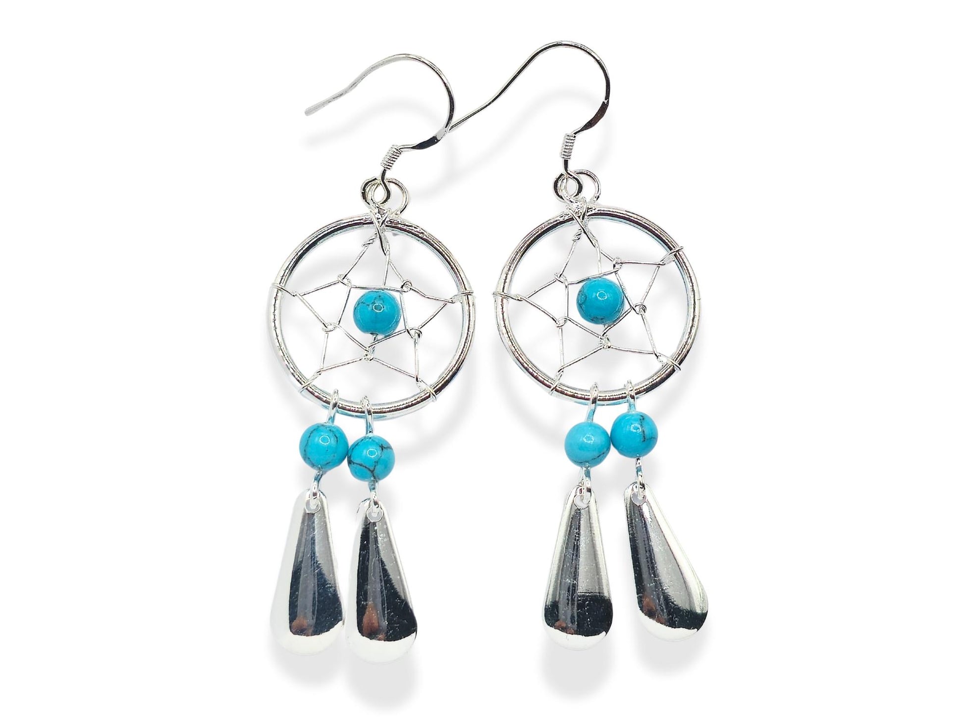 Handmade Silver Dreamcatcher Dangle Earrings with Genuine stone Beads Turquoise, Coral, Onyx and Lapis