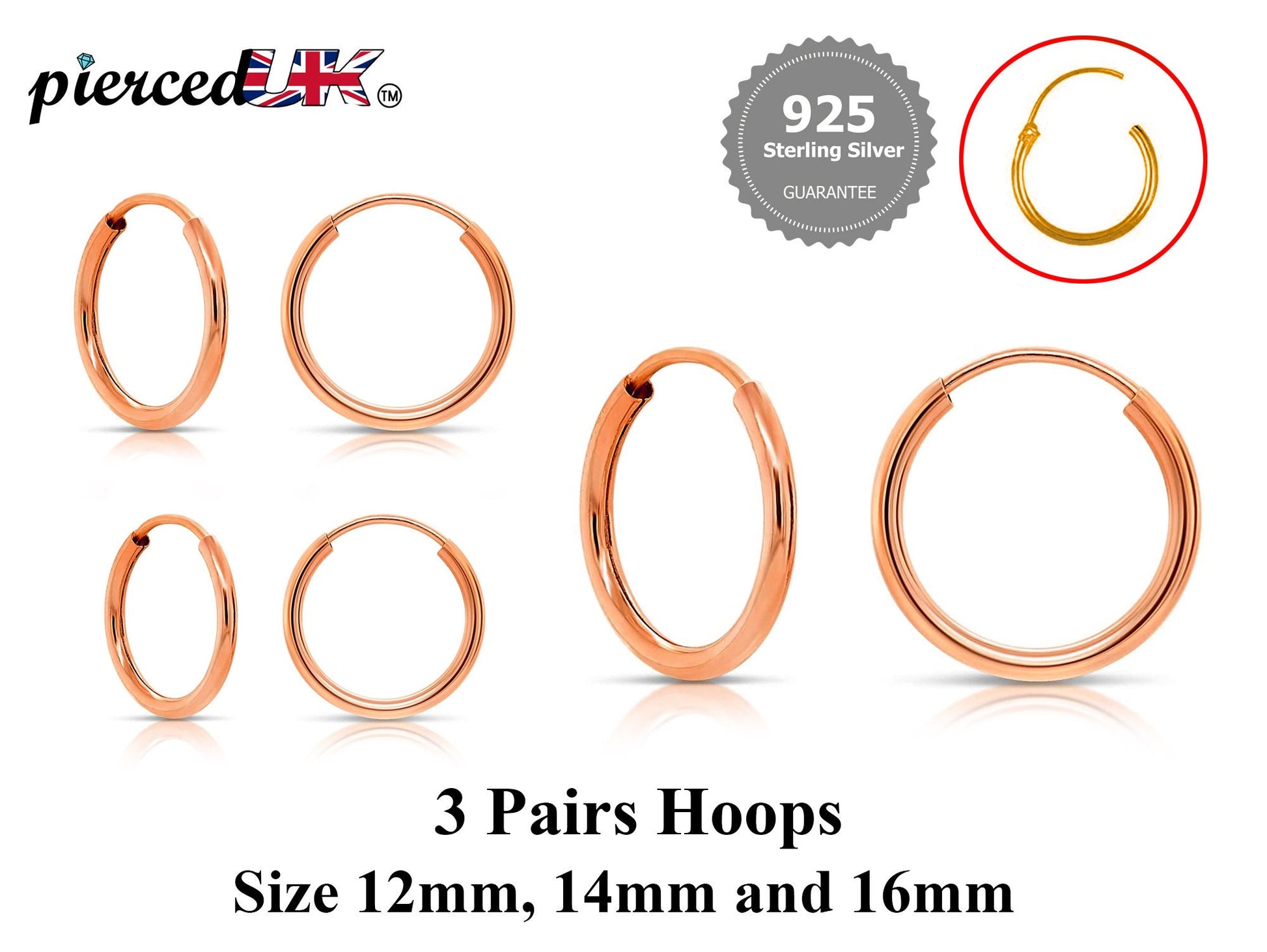 Hoop Earrings Silver - Set of 3 Pairs Hoop Earrings for Women - Comes in Sizes of 12mm, 14mm and 16mm - Silver, Gold, Rose Gold