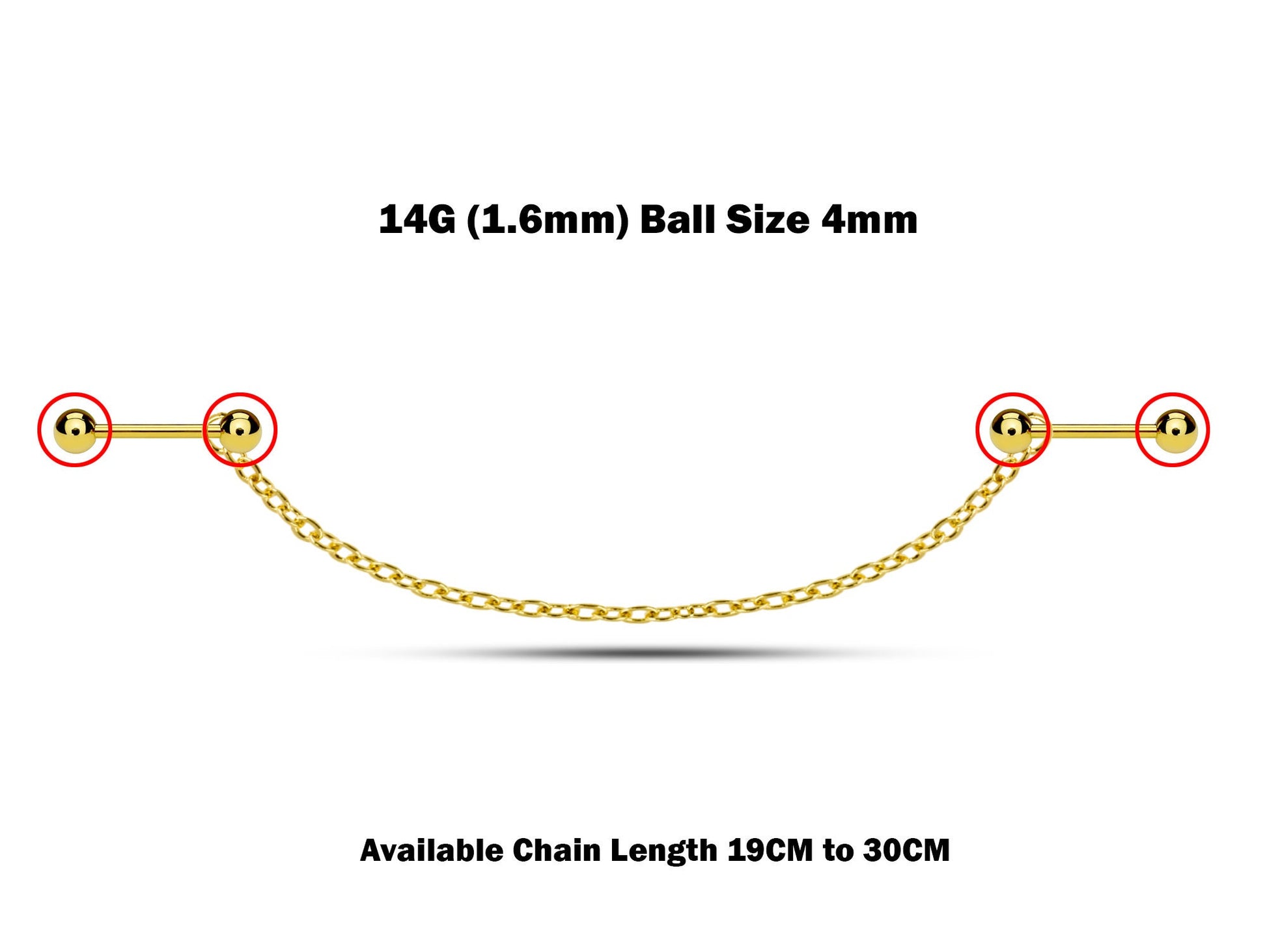 Nipple Jewelry, Nipple Piercing - 14g Nipple Barbell with Chain size 19CM to 30CM - Body Jewelry Breast Chain with 2 Barbells