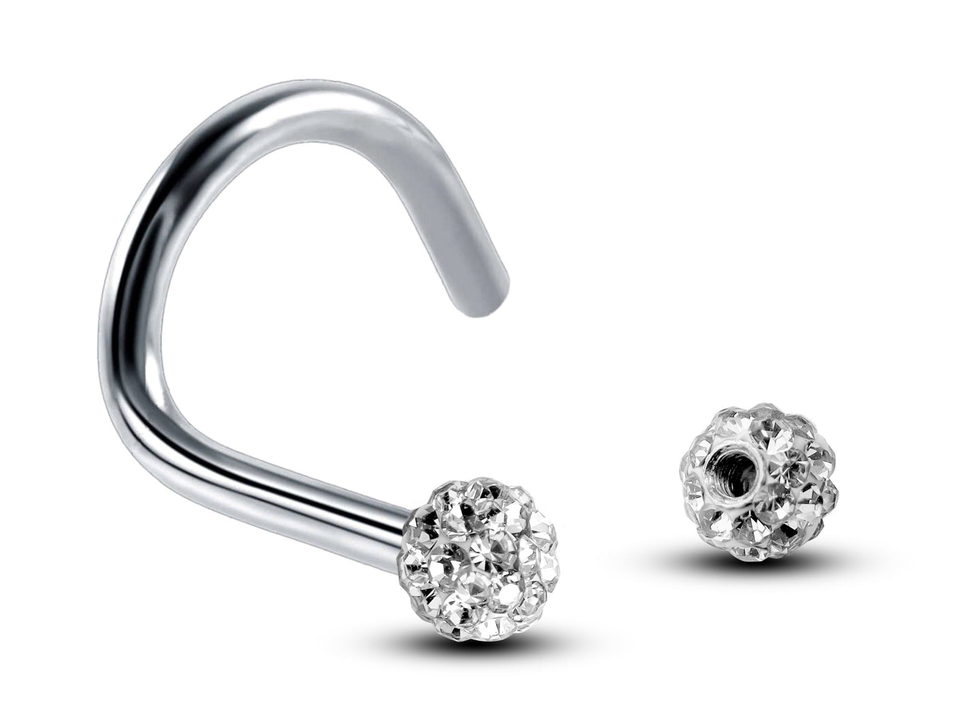 Nose Studs, Nose Ring - Nostril Screw Ring with Ferido Ball Crystal - Nose Piercing 18G, 16G