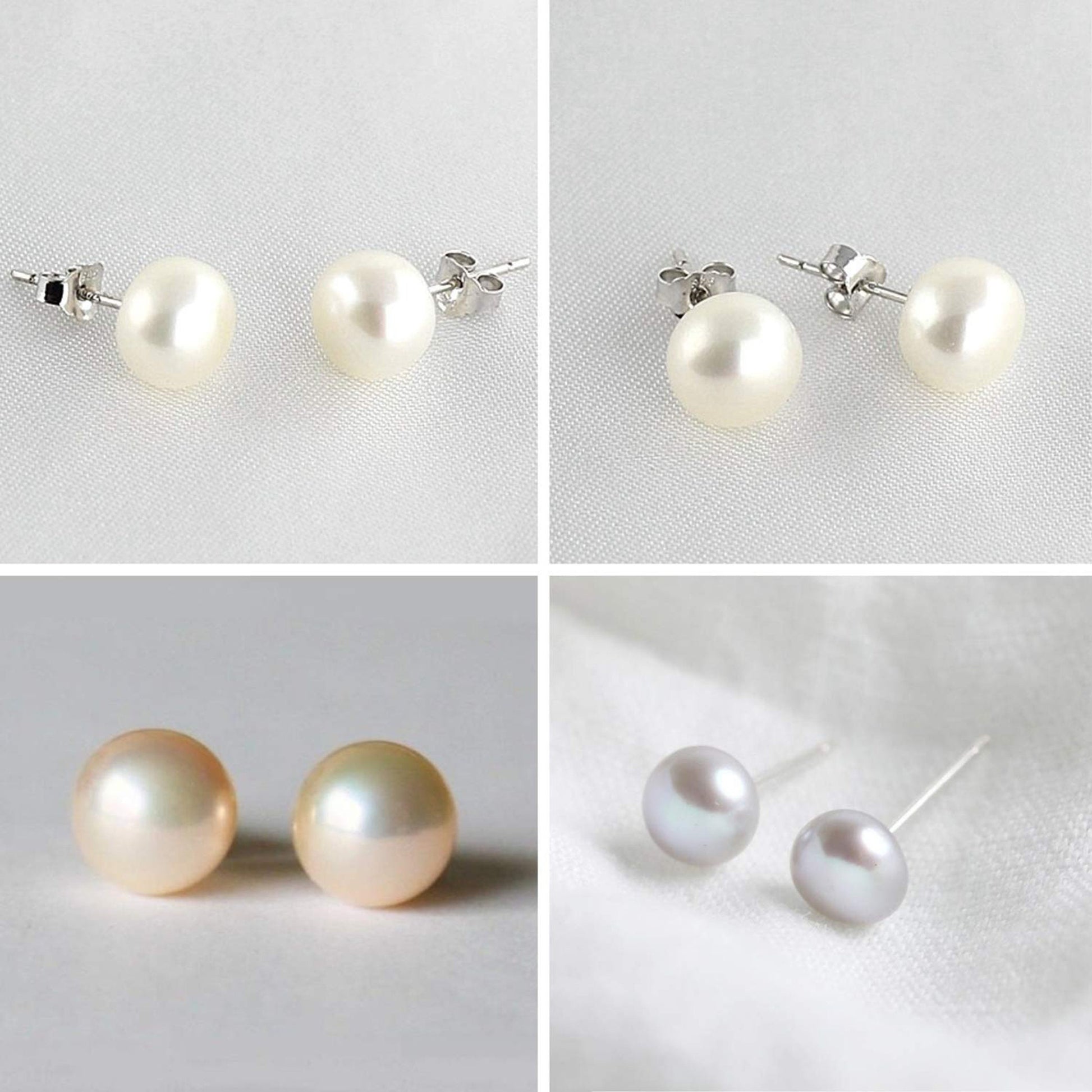 Pearl Earrings, Pearl Studs - Fresh Water Cultured Pearl - White, Peach & Dark Grey Shell Earrings - Surgical Steel Post