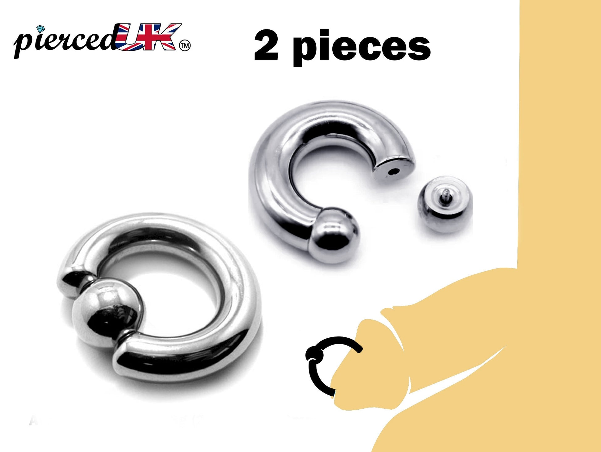 Prince Albert Piercing Jewelry, (2pcs) Ball Closure Ring and Circular Barbell 8G to 00G Big Gauge Large Size PA Ring