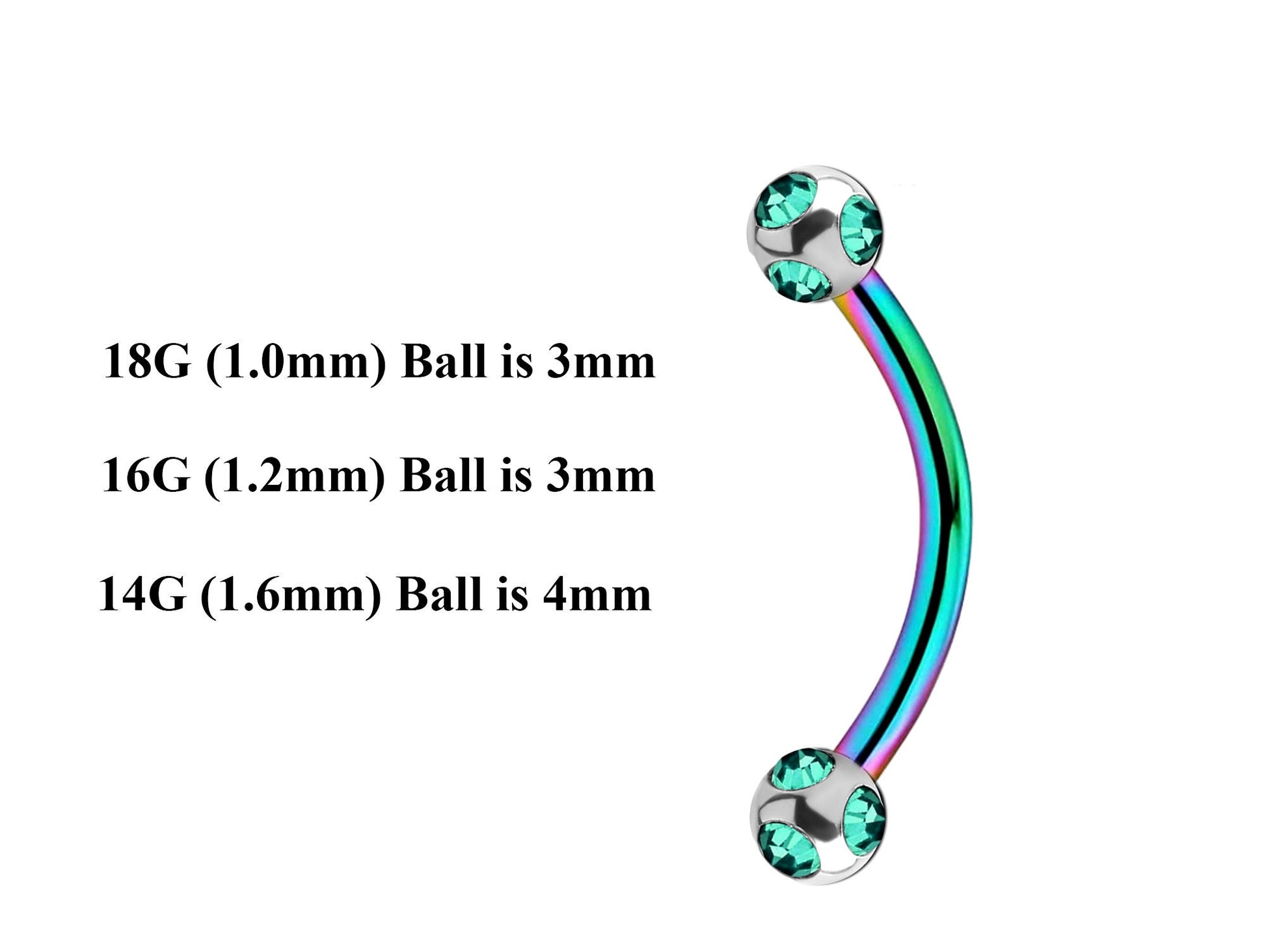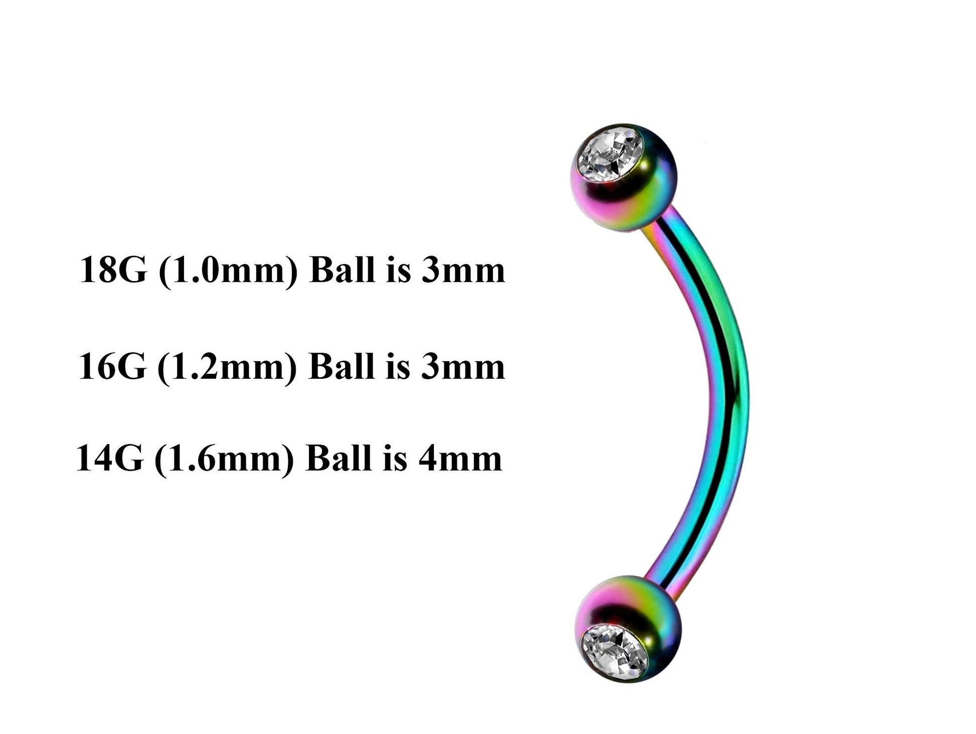Rainbow Curved Barbell, Lip Piercing – Custom Bent Barbell 18g 16g 14g Piercing for Daith, Vertical Labret and More