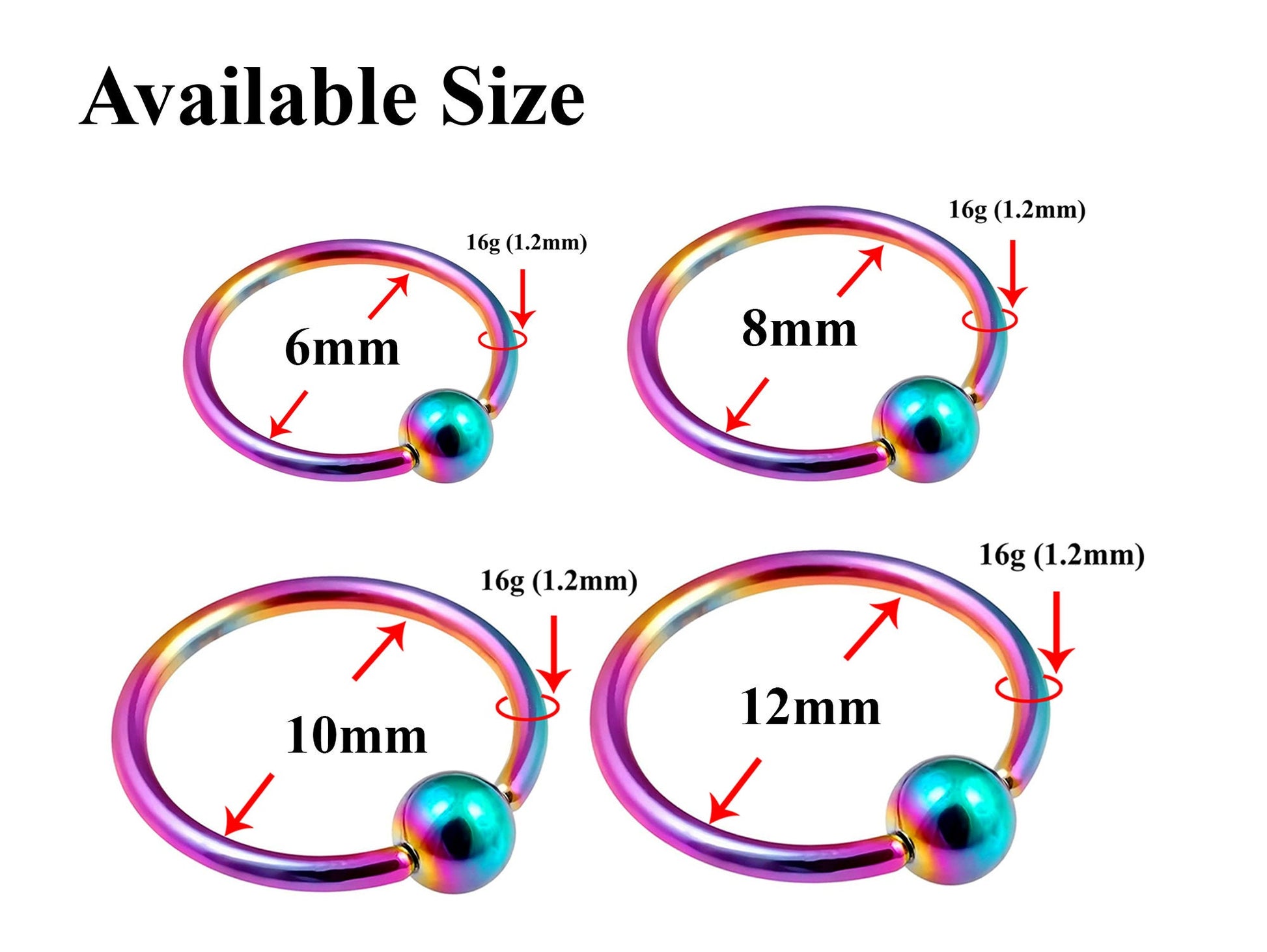 Rainbow Septum Ring, Captive Bead Ring 16g( 1.2mm) Piercings for Ear, Lip Ring, Nipple Ring and more – Gauge 18g to 0g – Length 6mm to 19mm