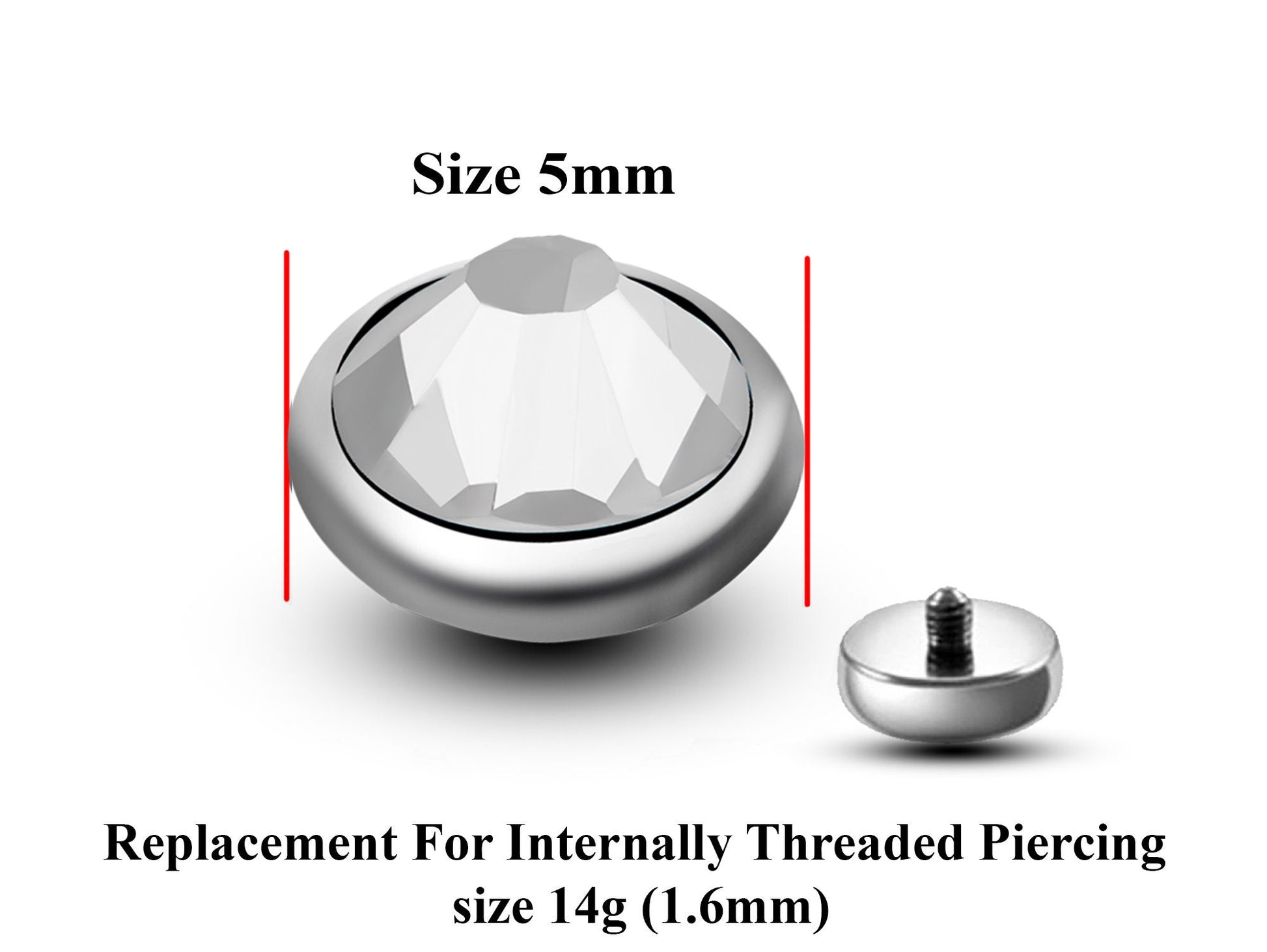 Replacement Piercing Parts, Loose Part – 2pcs –14g Attachment for internally threaded Piercing like Dermal Anchor, Surface Piercing, labret