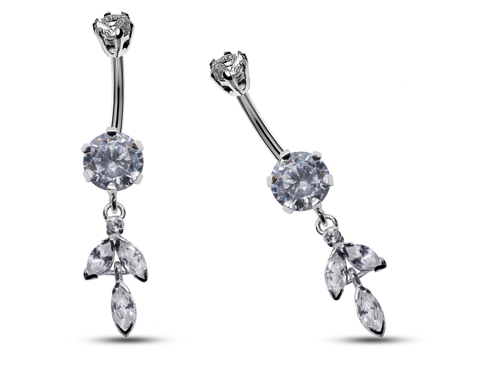 Silver Belly Button Ring, Belly Bars- Drop Dangle Belly Ring with High Quality Crystals - Navel Ring - 16g (1.6mm) Length is 10mm
