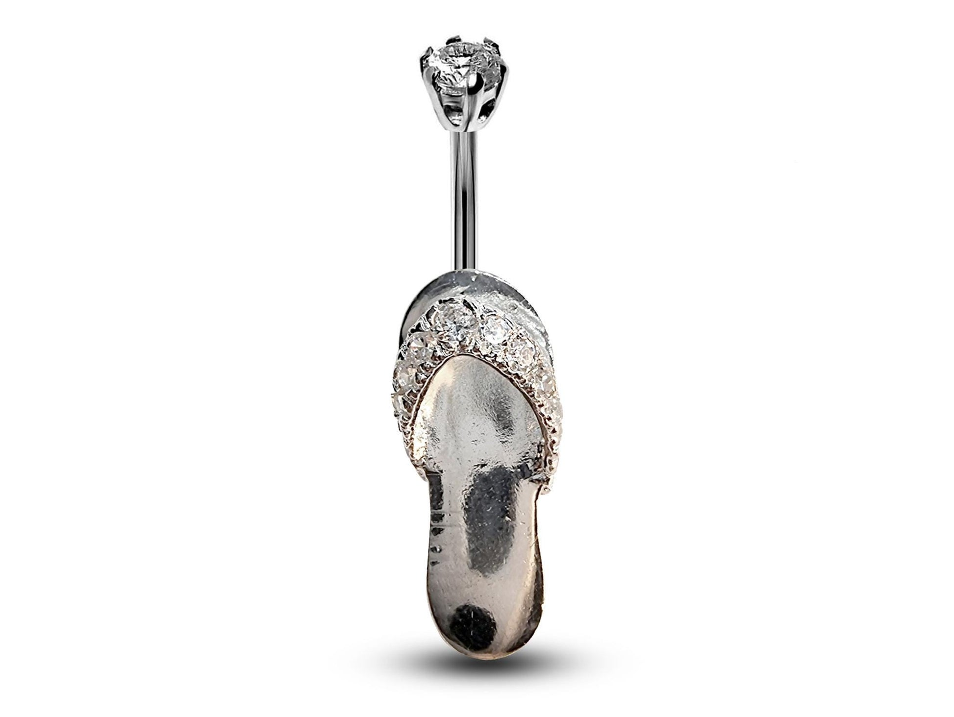 Silver Belly Button Rings, Navel Piercing - Sleeper Belly Piercing with High Quality CZ Crystals -Navel Jewelry-16g (1.6mm) Length is 10mm