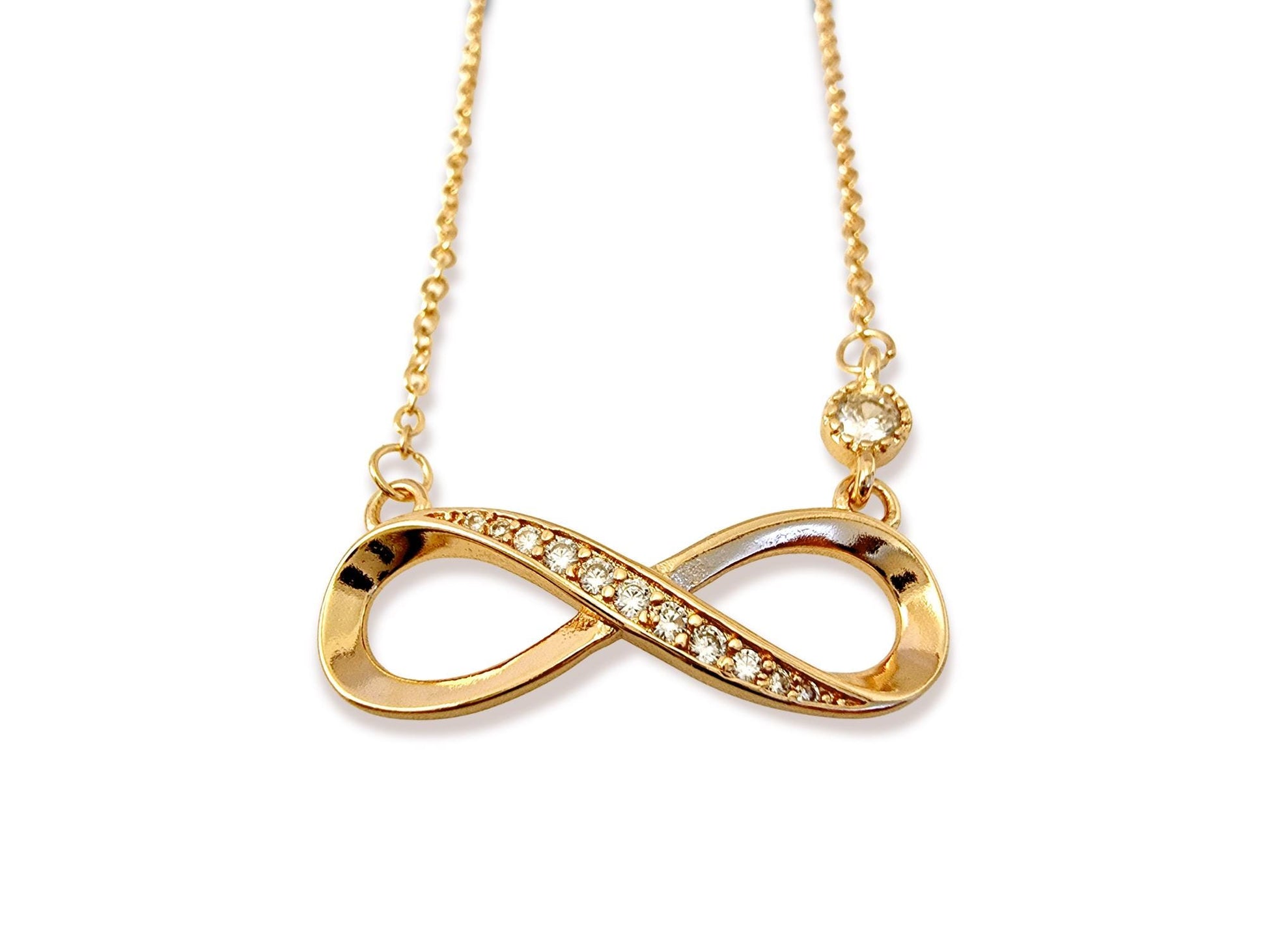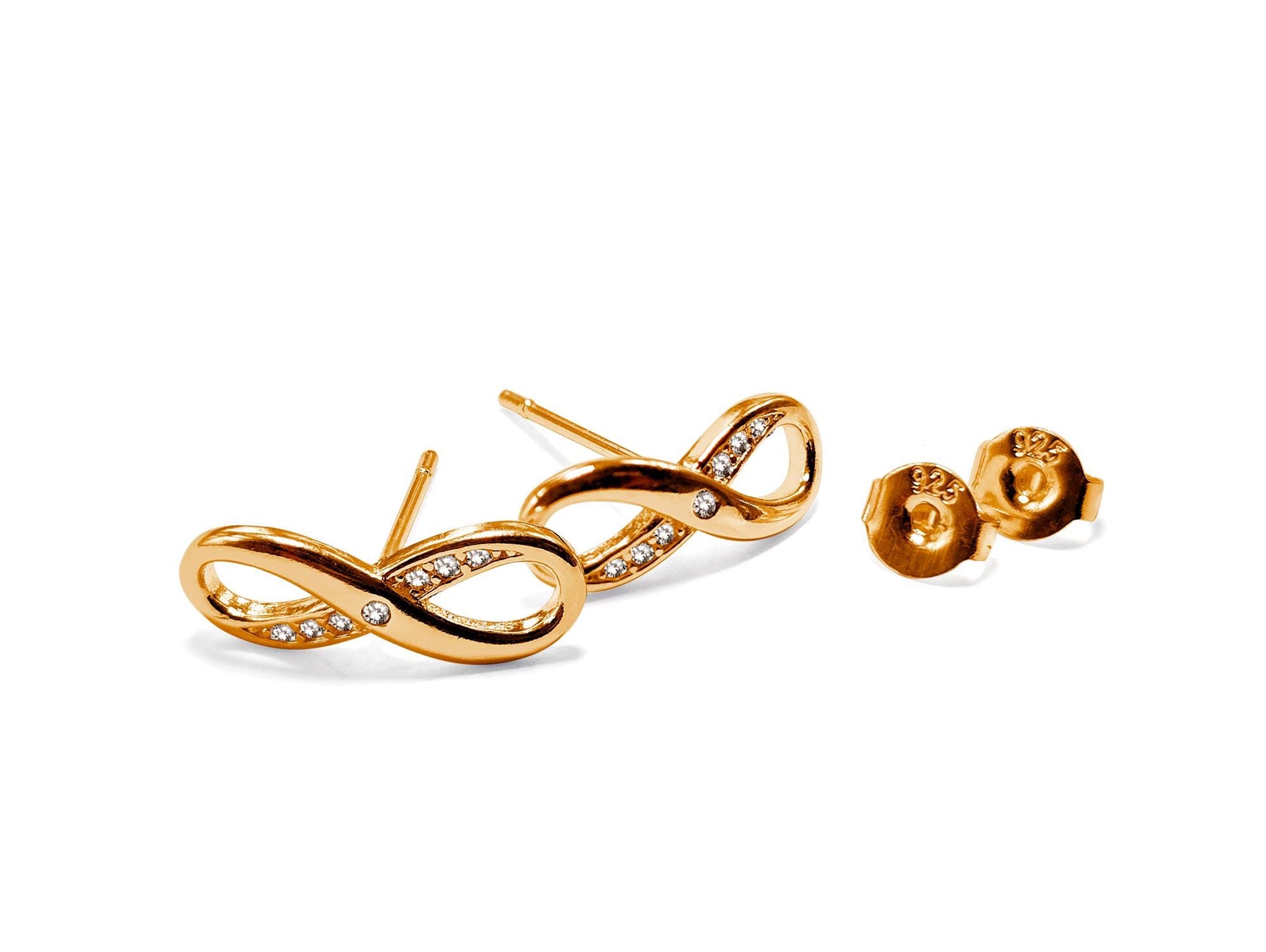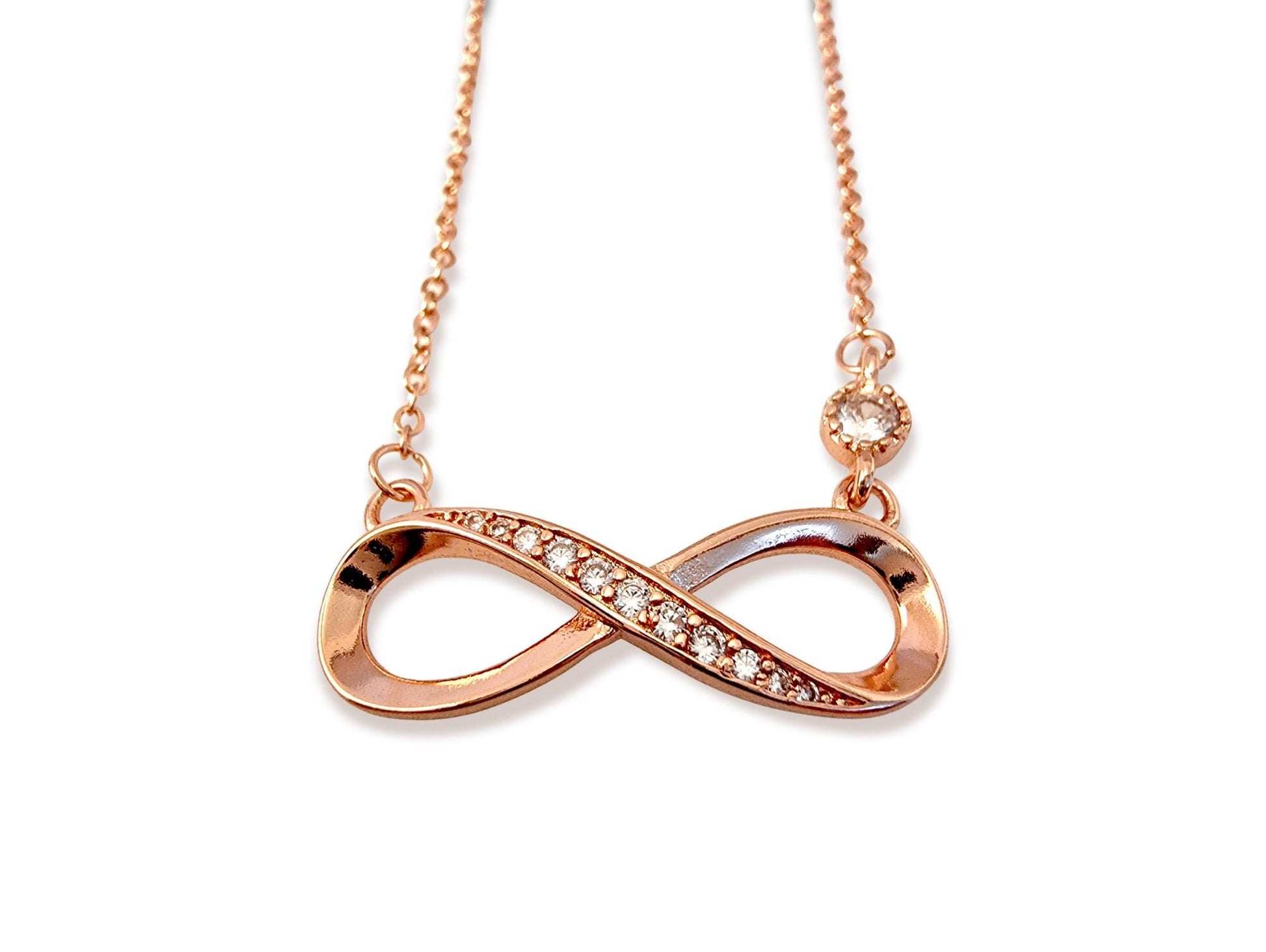 Silver Infinity Stud Earrings for Women with matching and Pendant Necklace with CZ Clear Stone Crystals - Timeless Jewelry - Eternal Symbol