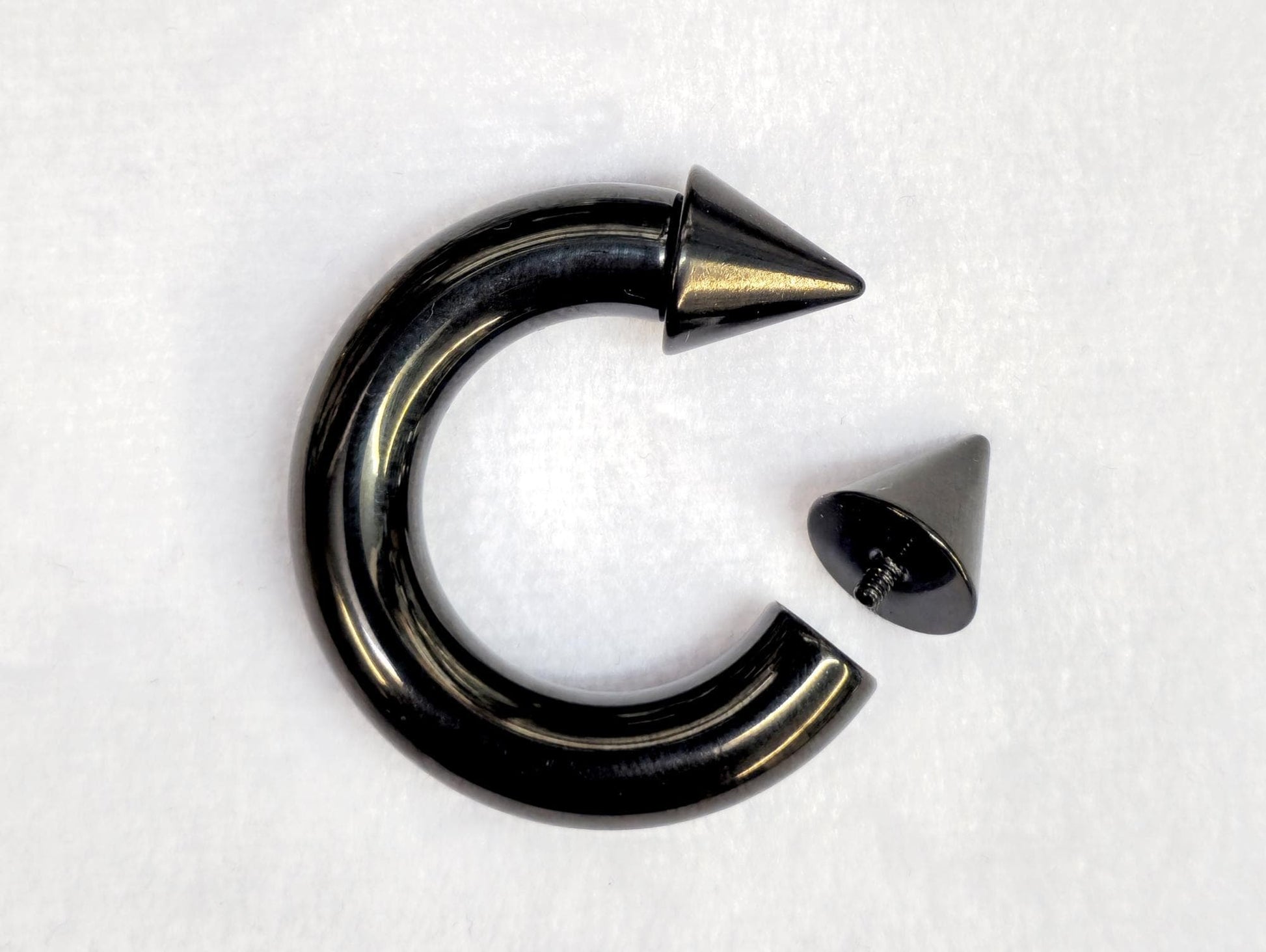 Spike Black Horseshoe Nose Septum Ring small to large size Circular Barbell CBB Body Jewellery 16G to 00G - 6mm to 19mm