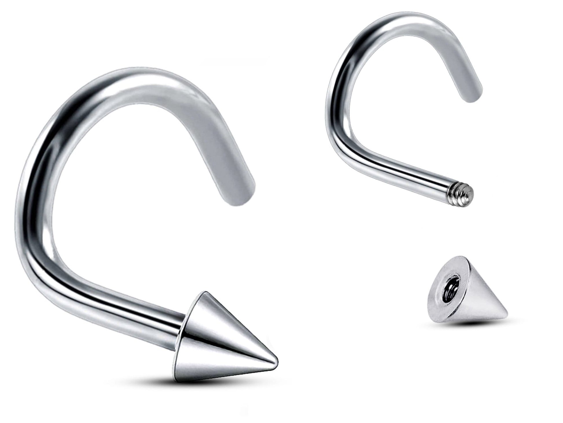 Spike Nose Studs, Nose Ring - 18g, 16g Nostril Screw Ring with Complete range of Cone and Spike sizes -Nose Piercing, Nose Jewelry, Nose Pin