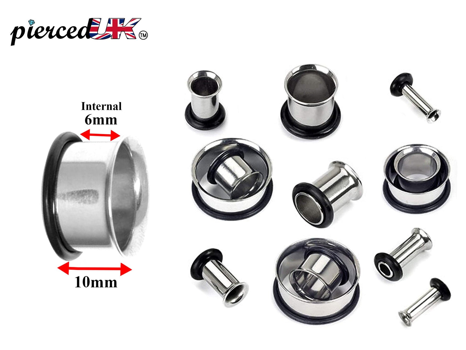 Steel Plugs, Single Flare Tunnels - Surgical Steel Plugs Earrings Piercing Tunnel with rubber O-ring for Ear Lobe Earring, Body Modification