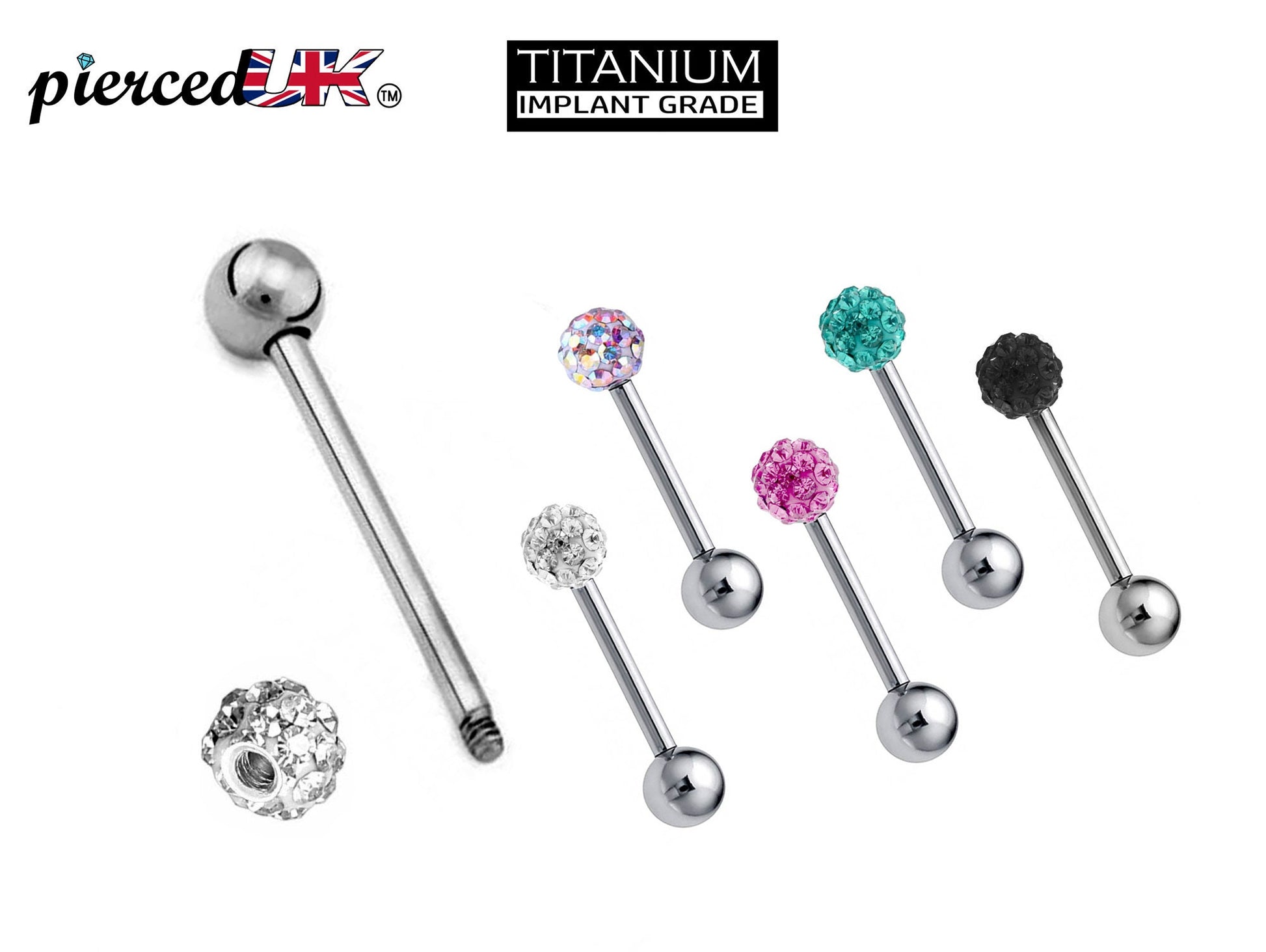 Titanium Barbell Piercing - Industrial Earrings – 16g, 14g (1.2mm & 1.6mm) – Piercing for Tongue Bars, Nipple Piercing, Ears – 6mm to 44mm