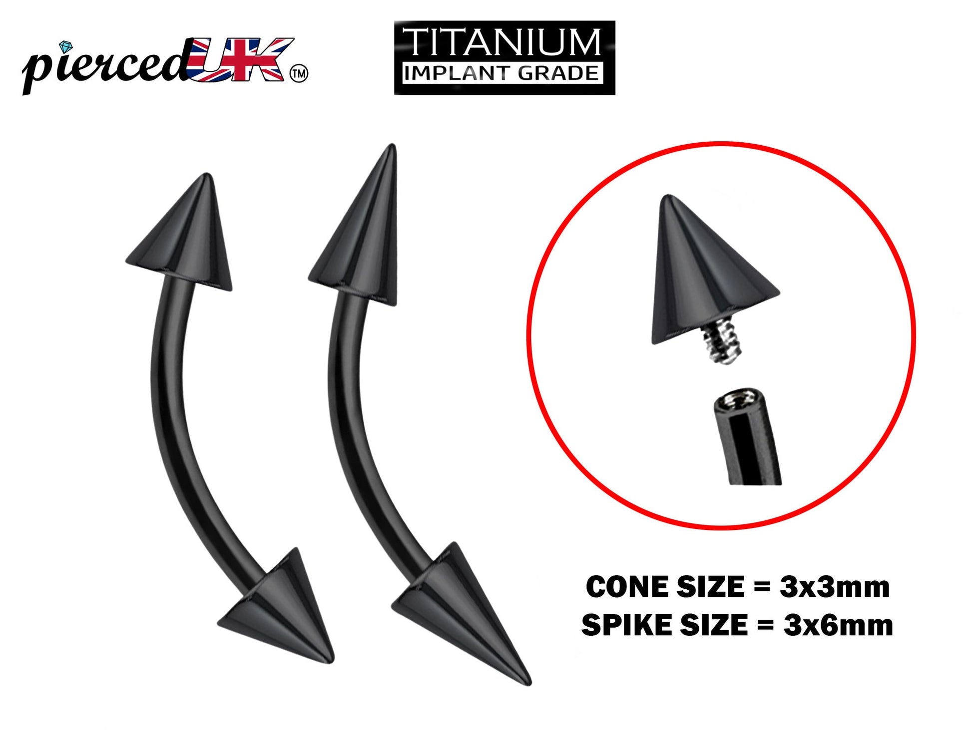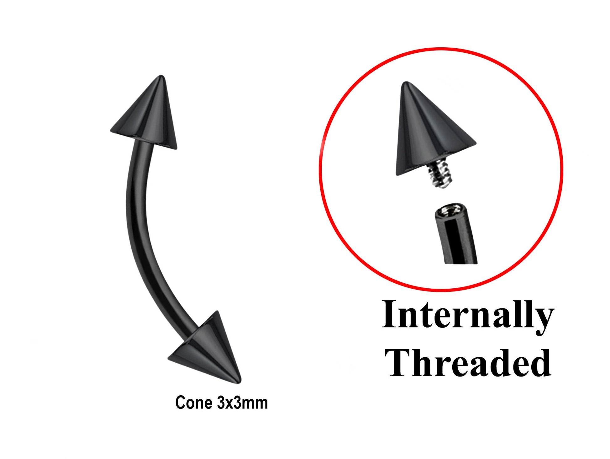 Titanium Black Curved barbell, Eyebrow Piercing – 16g 14g Spike / Cones Bent Barbell for Eyebrow Jewelry - Internally Threaded