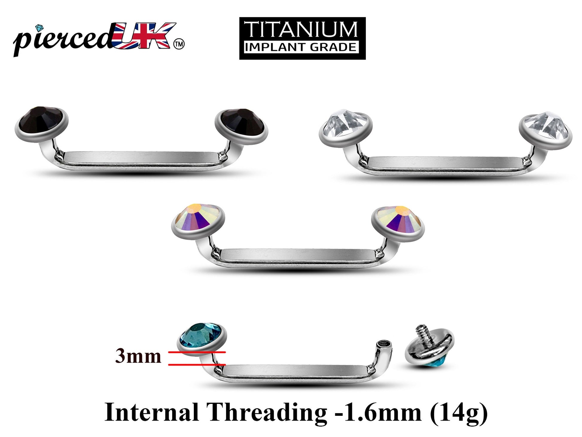 Titanium Flat Surface Piercing Jewelry, 14g Staple Barbell - Internally Threaded Dermal Bar with Pyramid Top Gem Crystal