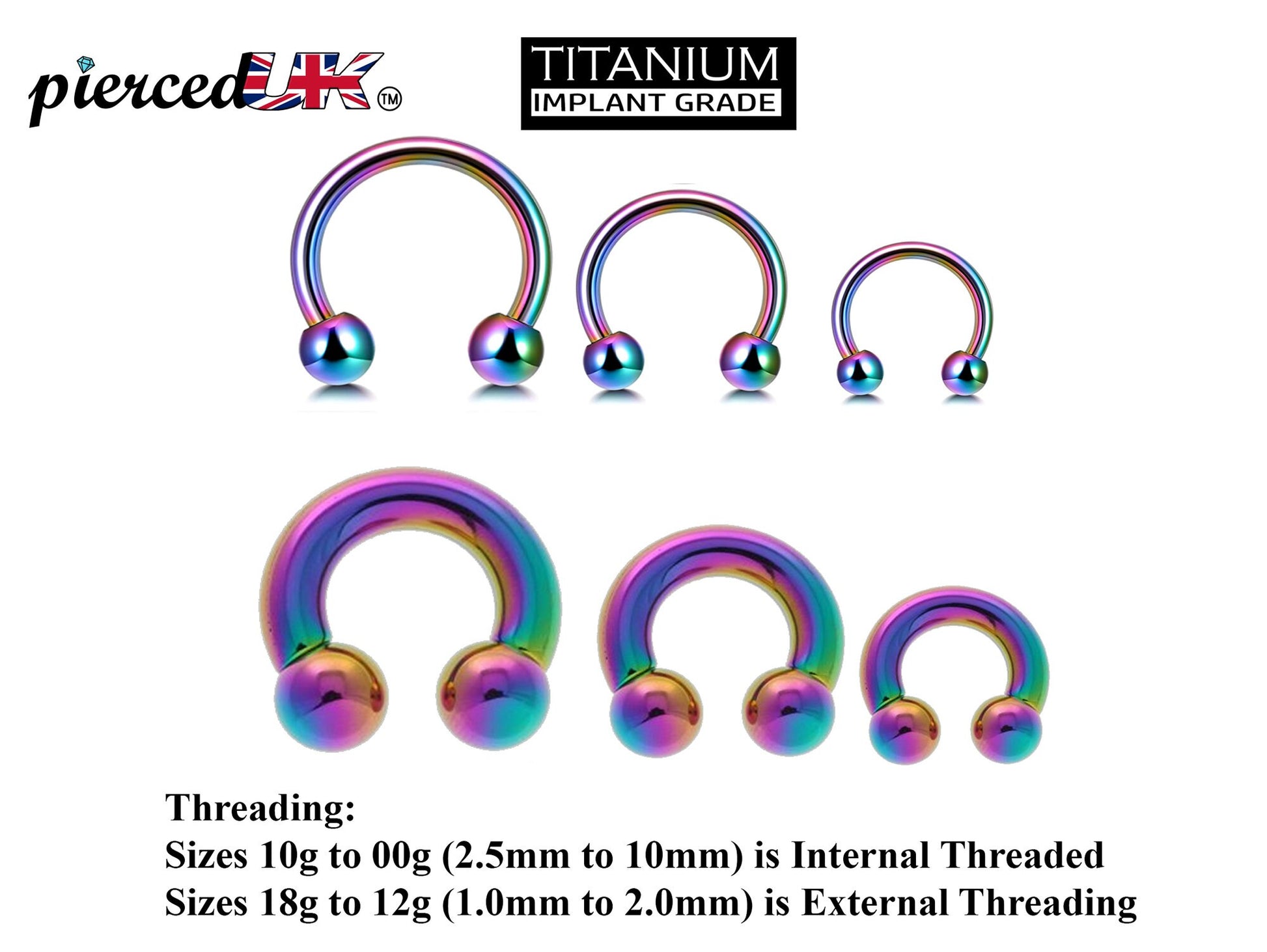 Titanium Horseshoe - Titanium Nose Piercing - Rainbow Septum Ring - 00G, 0G, 1G, 2G, 4G, 6G, 8G, 10G, 12G, 14G 16G, 18G - Size 6mm to 19mm