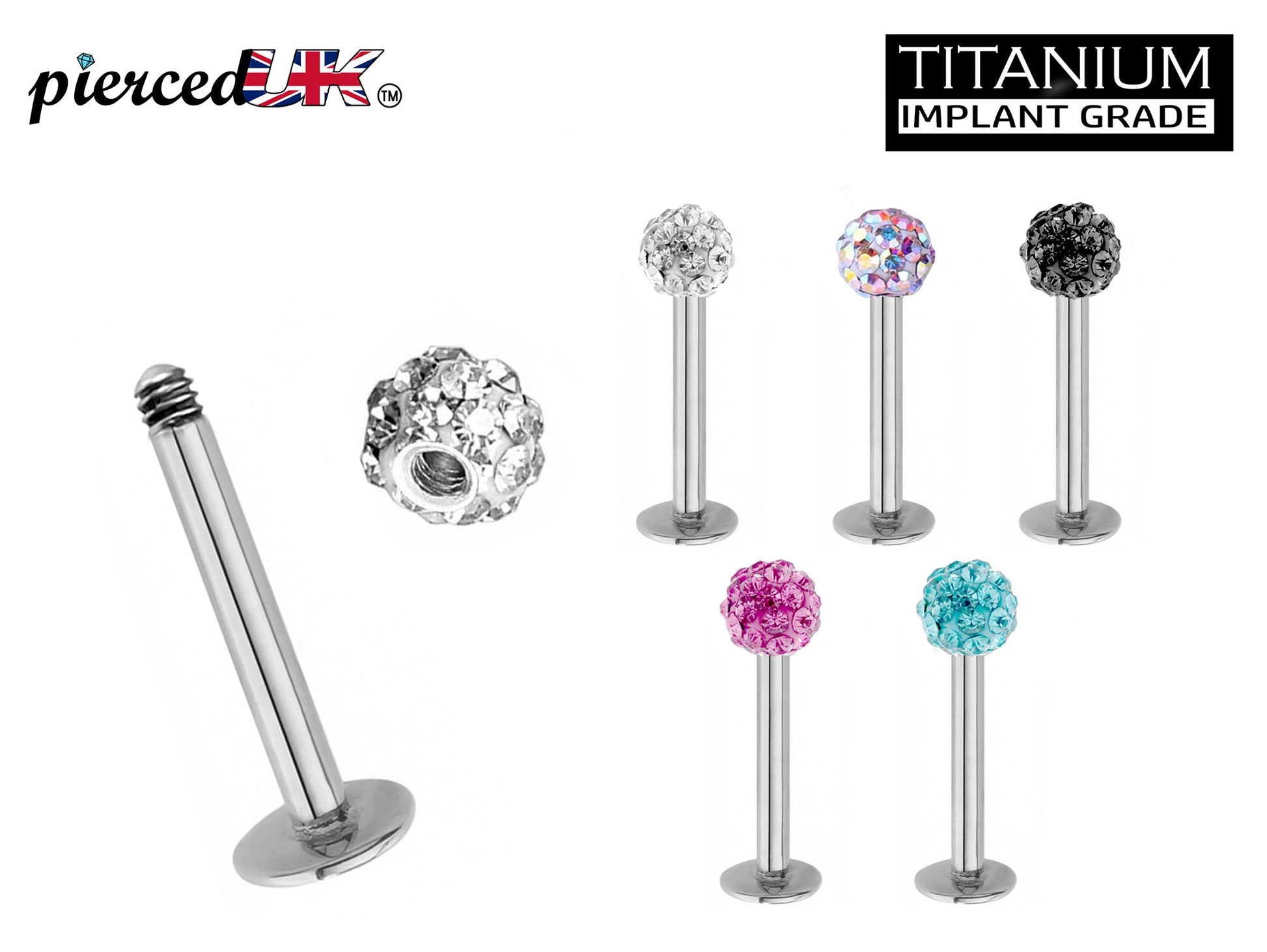 Titanium Labret Labret Stud, Labret Monroe with Multi Crystal Ball – Flatback Lip Piercing Jewelry – Labret Piercing for Lip, Chin.
