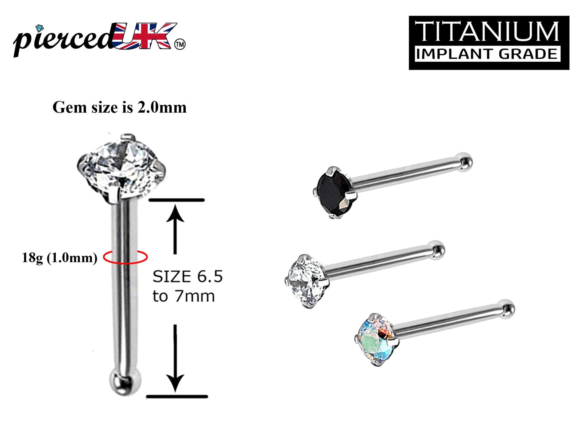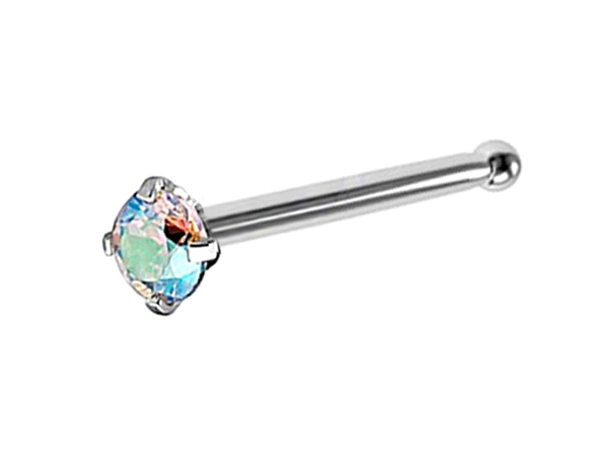 Titanium Nose Pin, Nose Studs - Nose Bone Stud with Prong Set CZ Crystals - Nose Piercing Size 18g (1.0mm)
