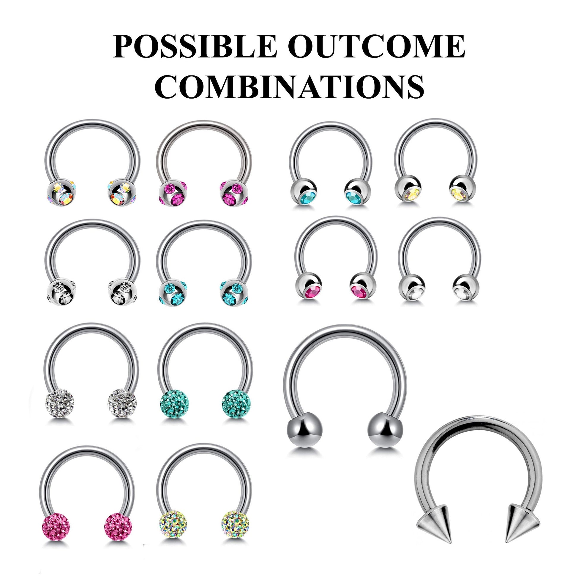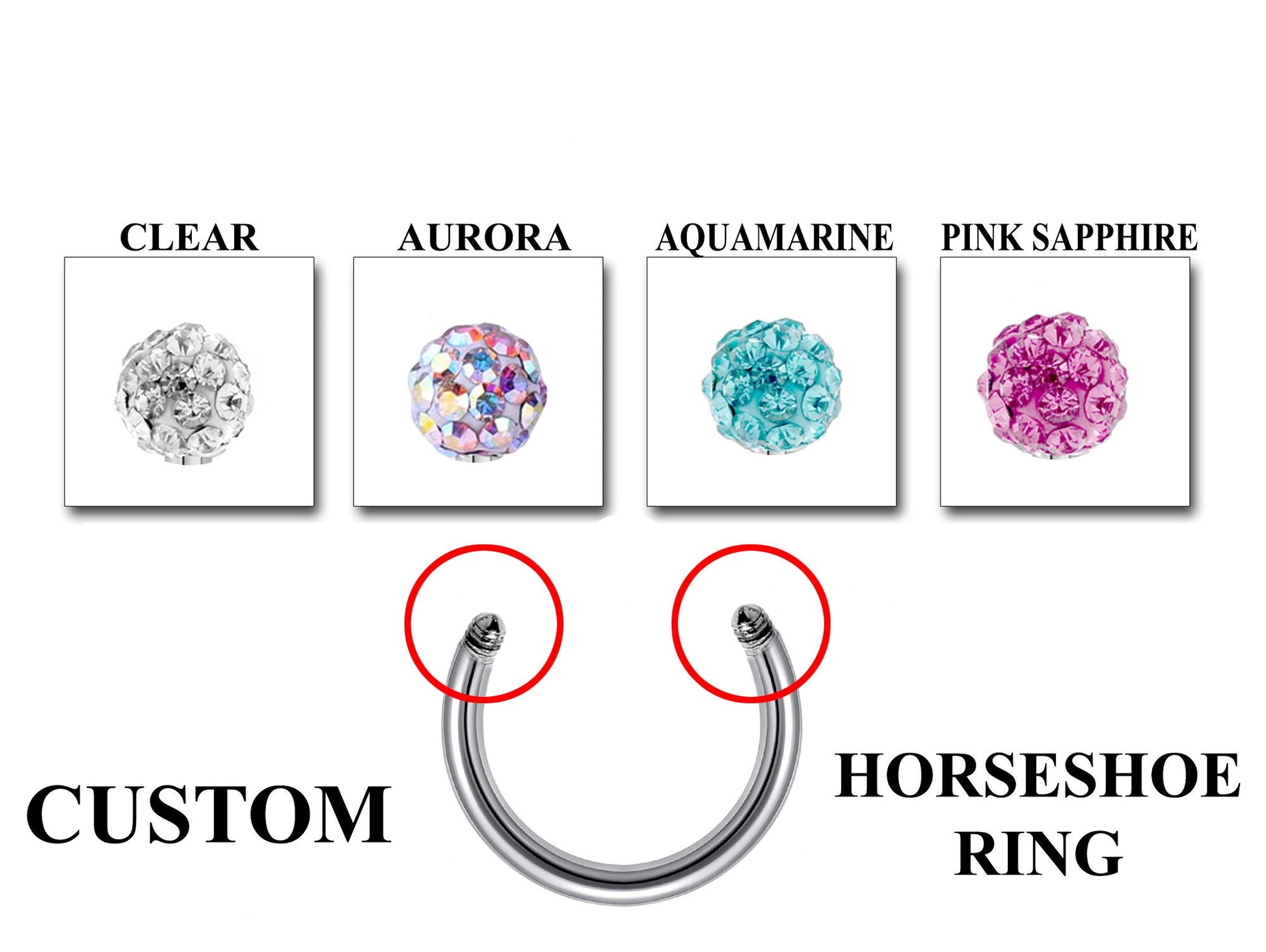 Titanium Nose Ring- Customize Horseshoe Barbell Piercing in 16g / 14g - Spike - Gem Ball - Multi Stone - Disco Ball - Plain Ball.