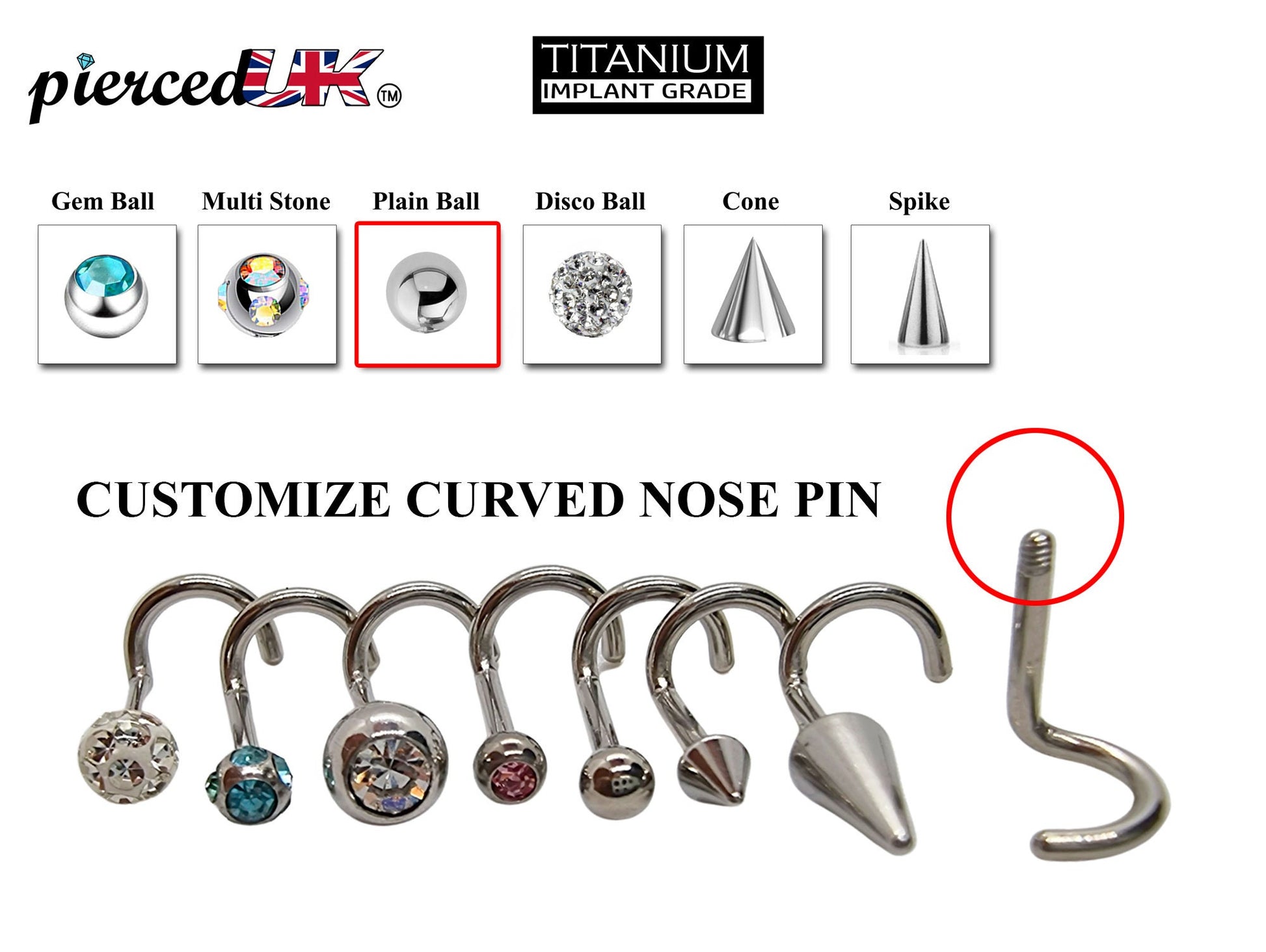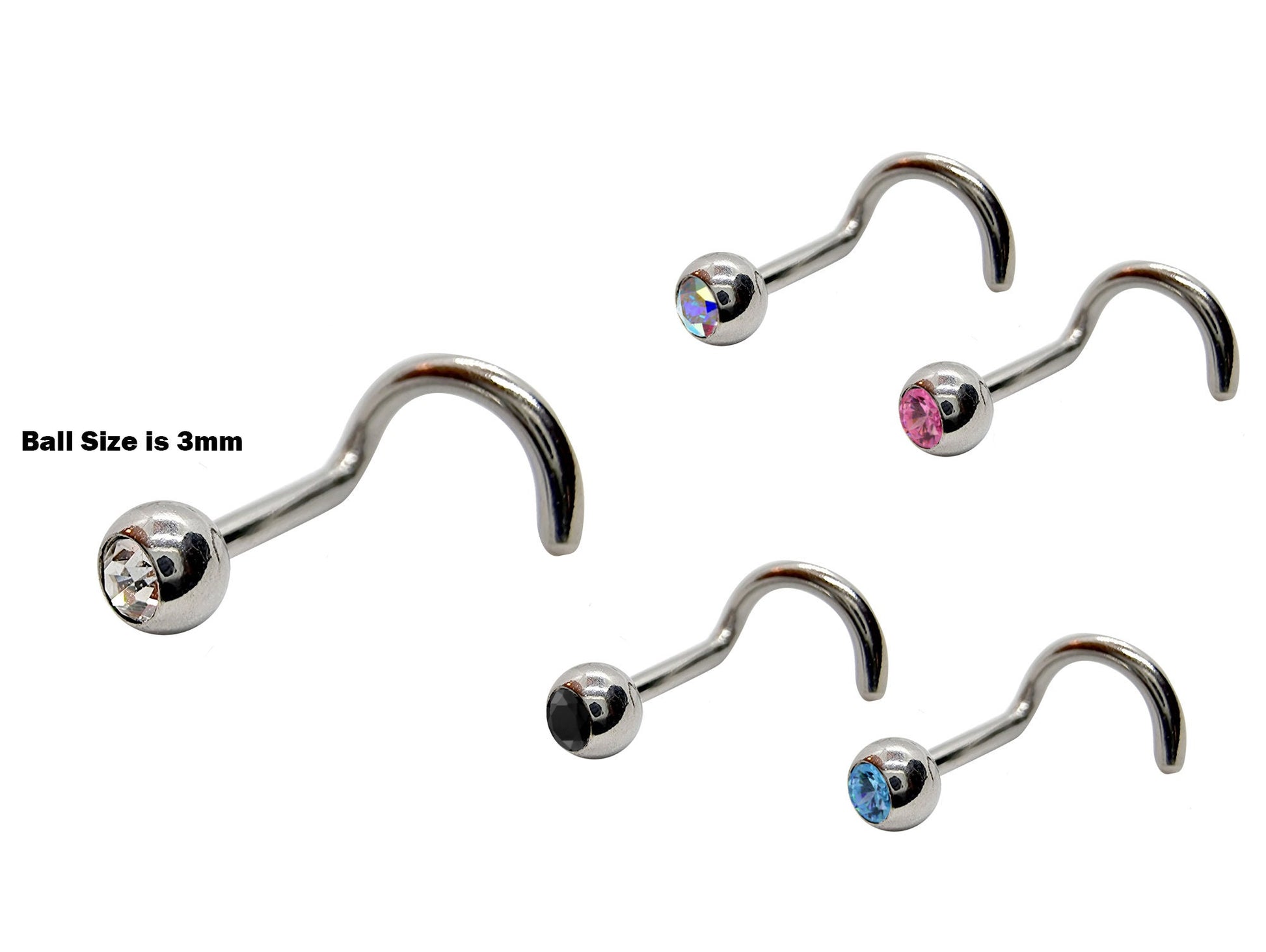 Titanium Nose Ring, Nose Studs - Customize 20g 18g 16g Nostril Screw Ring - Top part can be Cone, Spike, Gem or Multi Crystal - Nasal Studs