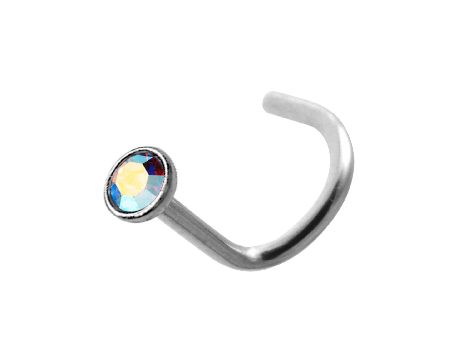 Titanium Nose Studs, Nose Ring - 18G Nostril Screw Ring with Inlay Bezel Setting 2.5mm Crystal Nose Piercing, Nose Jewelry - Length 8mm