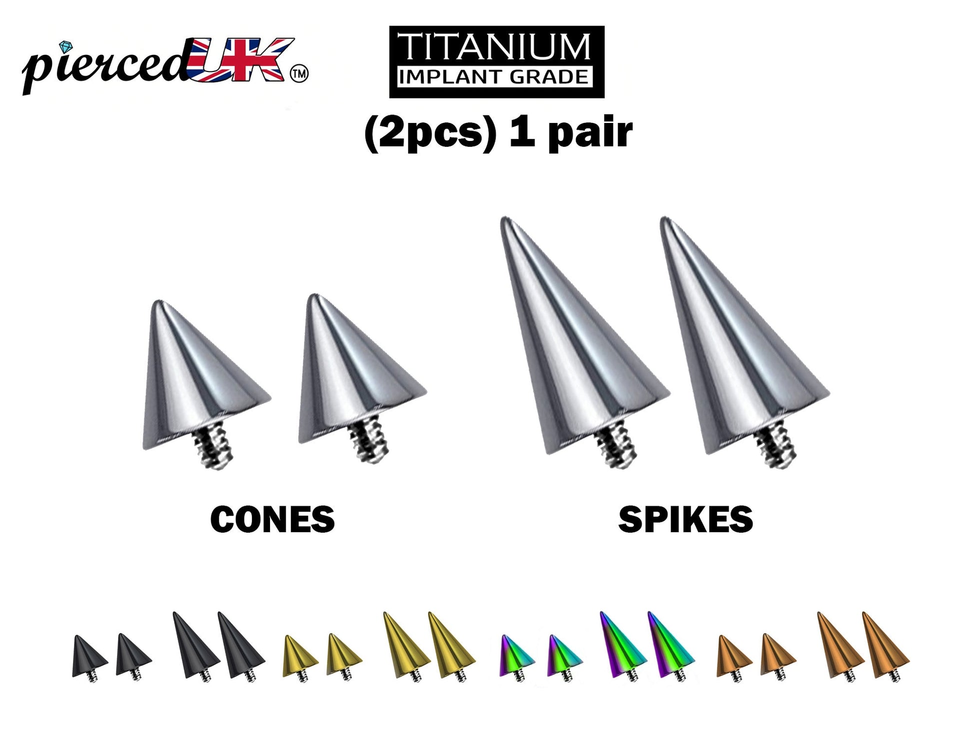 Titanium Spike Piercing, Pair of Spike and Cone Replacement for Internal Piercing Parts– 16g to 0g Attachment for Barbell, Labret, Horseshoe