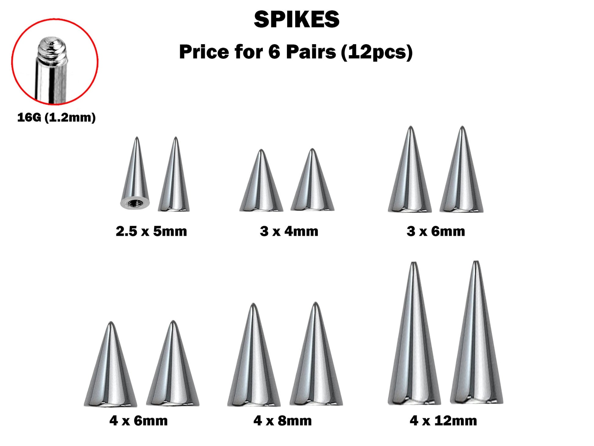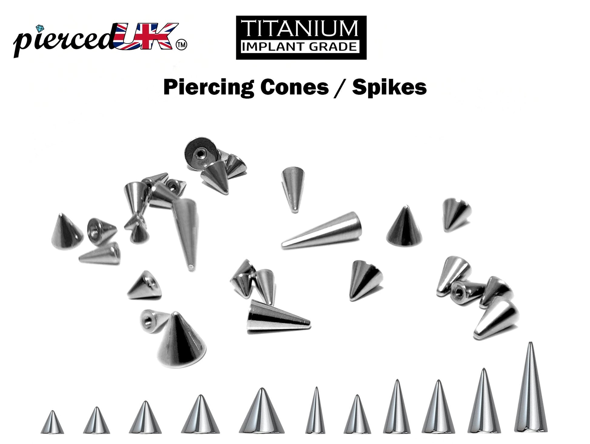 Titanium Spike Piercing, Threaded Spike and Cone Bundle Replacement Piercing Parts - 16g, 14g Attachment for Barbell, Labret, Horseshoe Bar